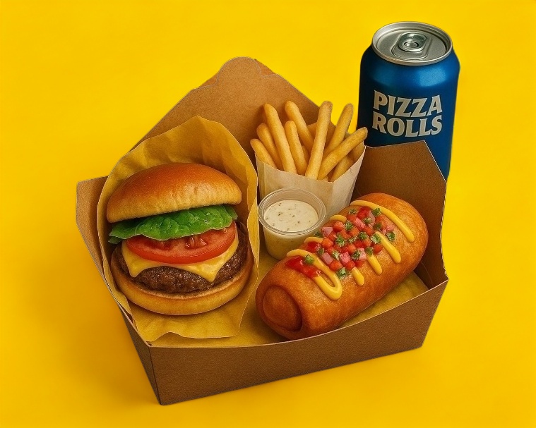 3 Pizza Rolls + Papas + Refresco