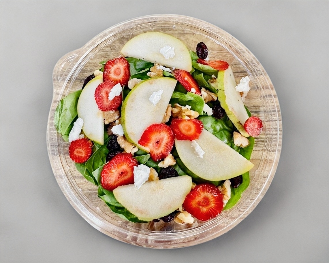 Espinacas frescas, fresa, arándano, nuez y queso cabra.