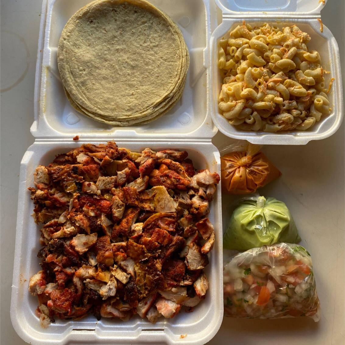 Incluye Pasta Grande, 4 Salsas, 2 salsas bandera y Tortillas.