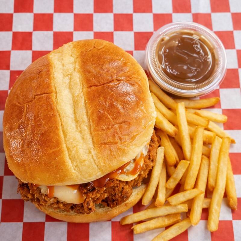 Hamburguesa de pollo BBQ con queso