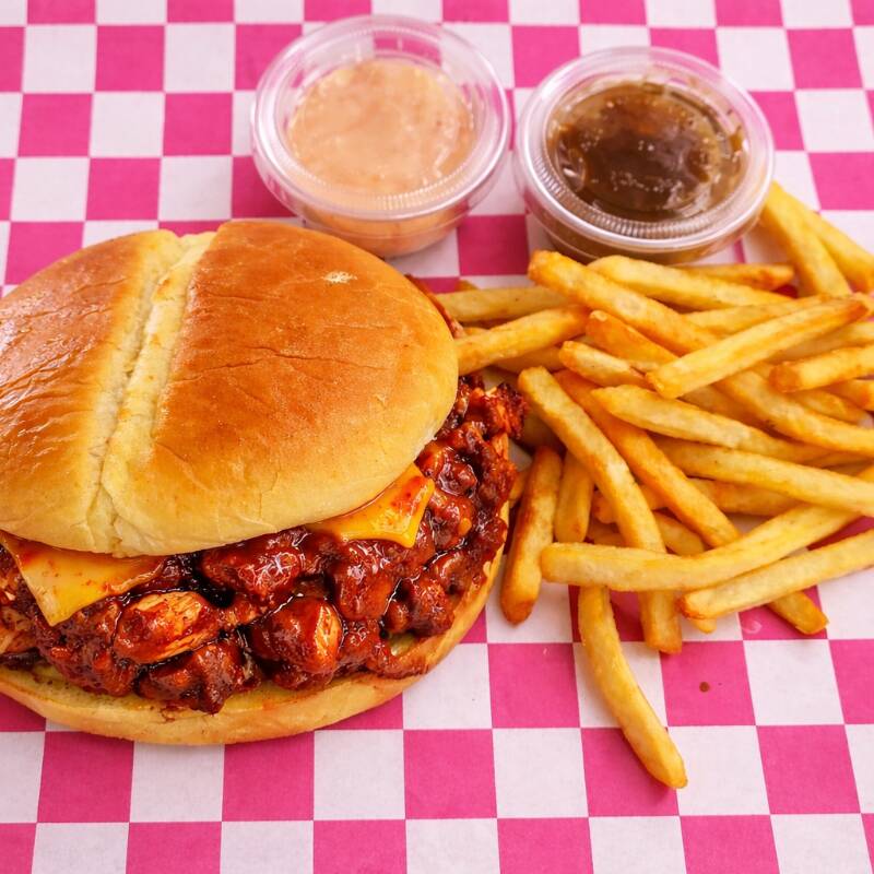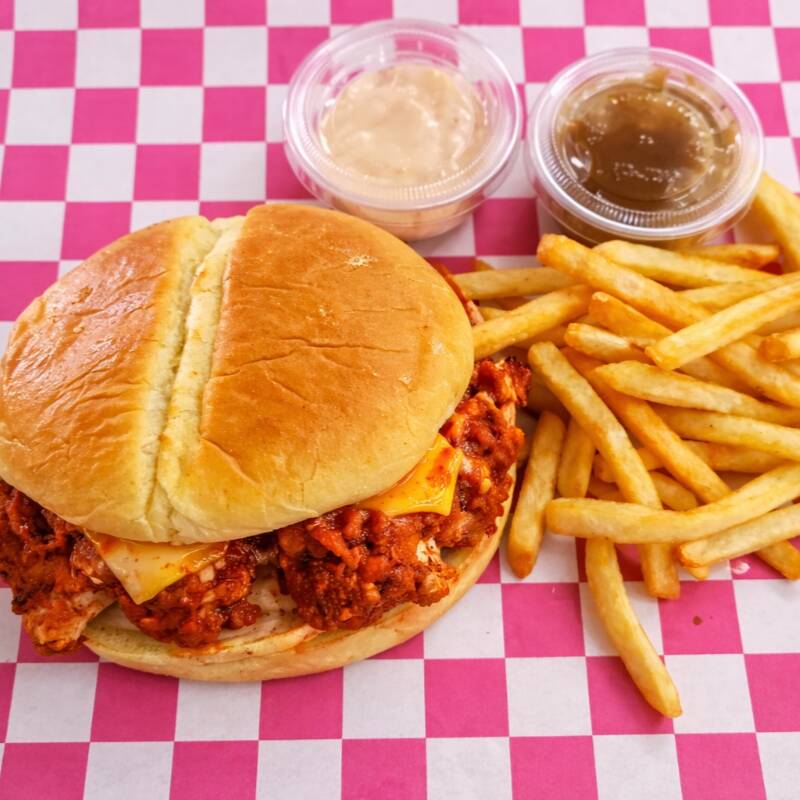 Hamburguesa De Pollo BBQ*1 + Orden De Papas Fritas*1 + Puré De Papa*1 + Aderezo De la casa*1