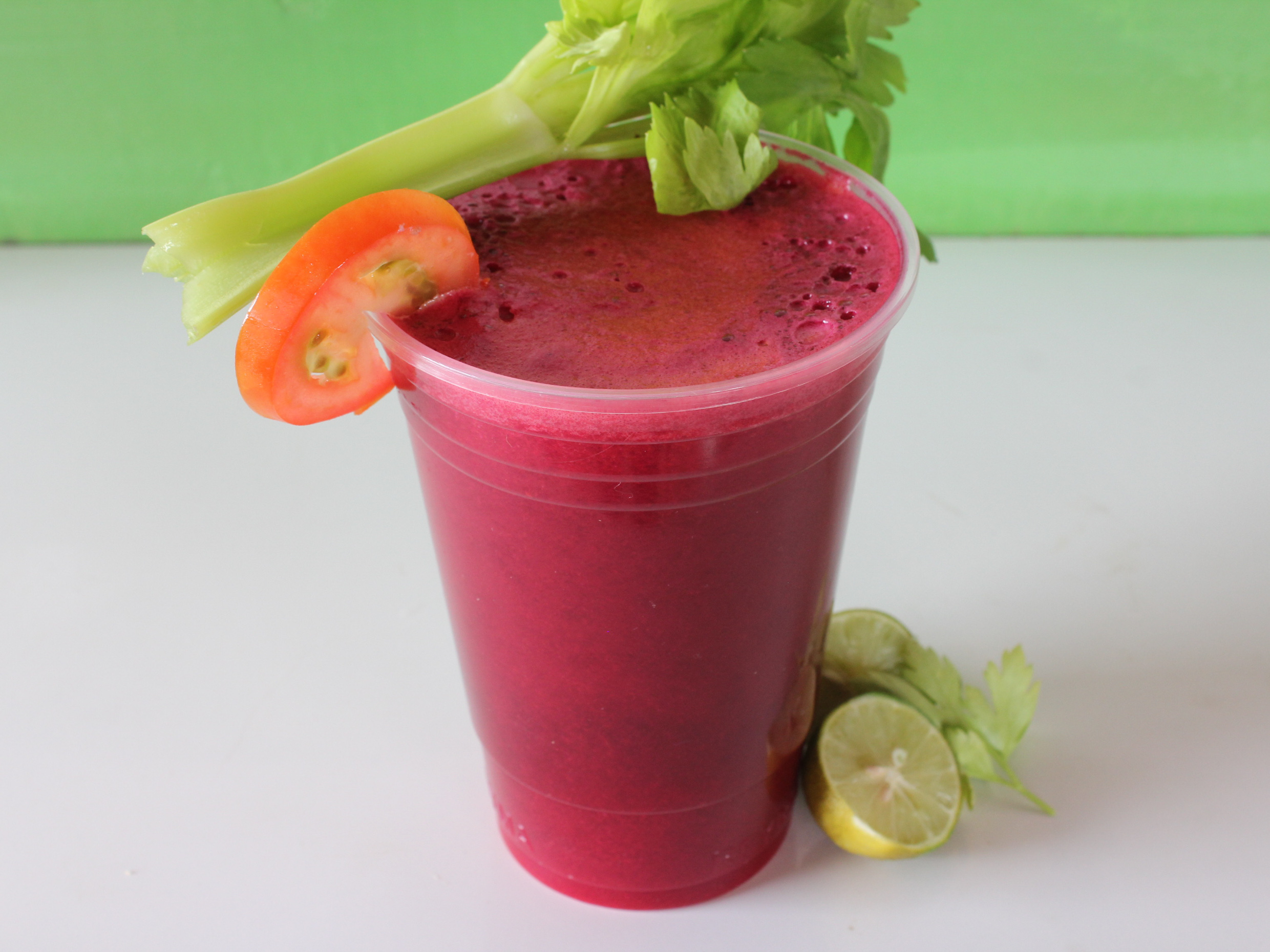 Zanahoria, betabel, apio, tomate, lechuga, espinaca, perejil y limón.