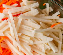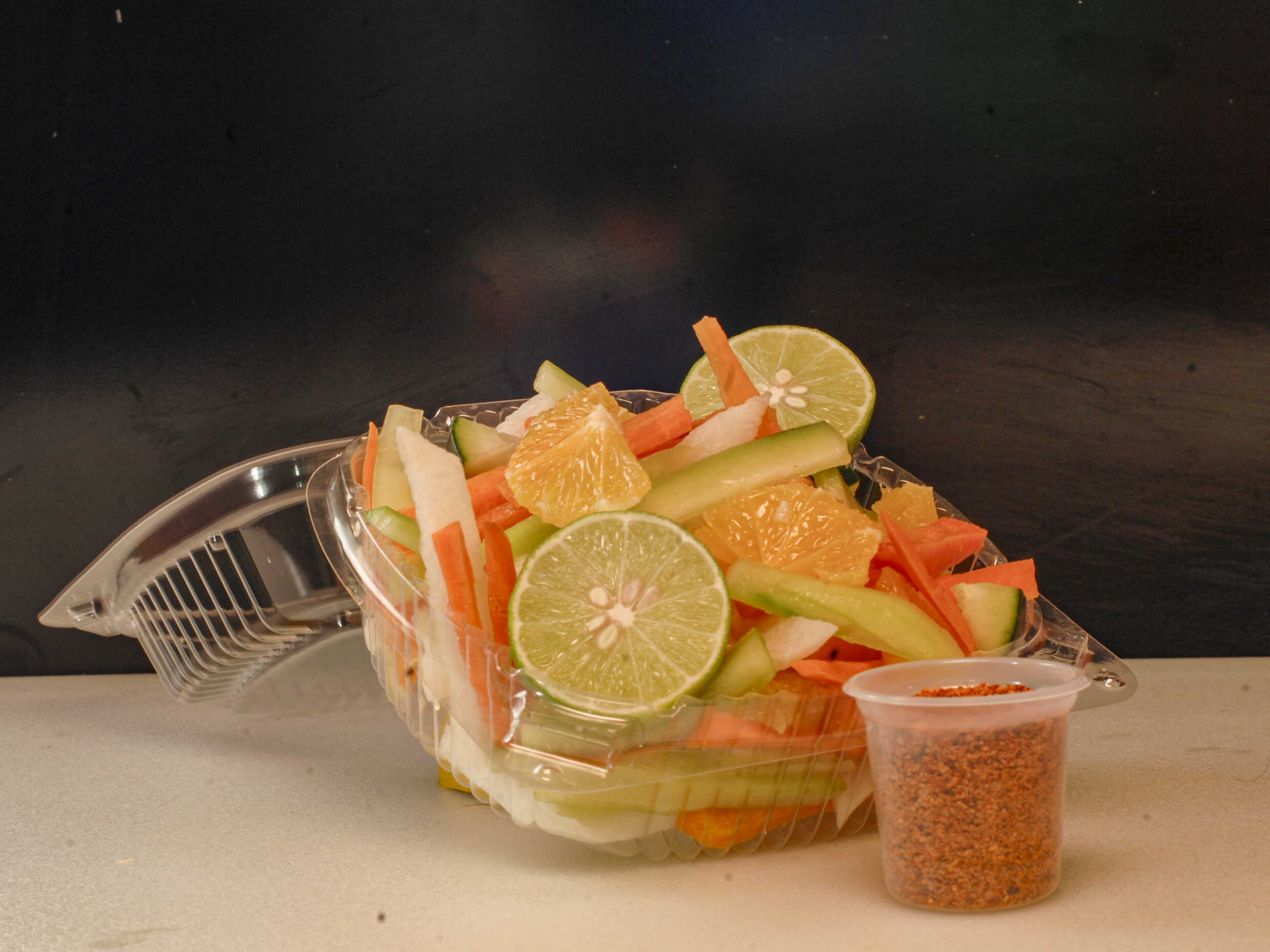 Jícama, zanahoria, pepino con Tajín y limón