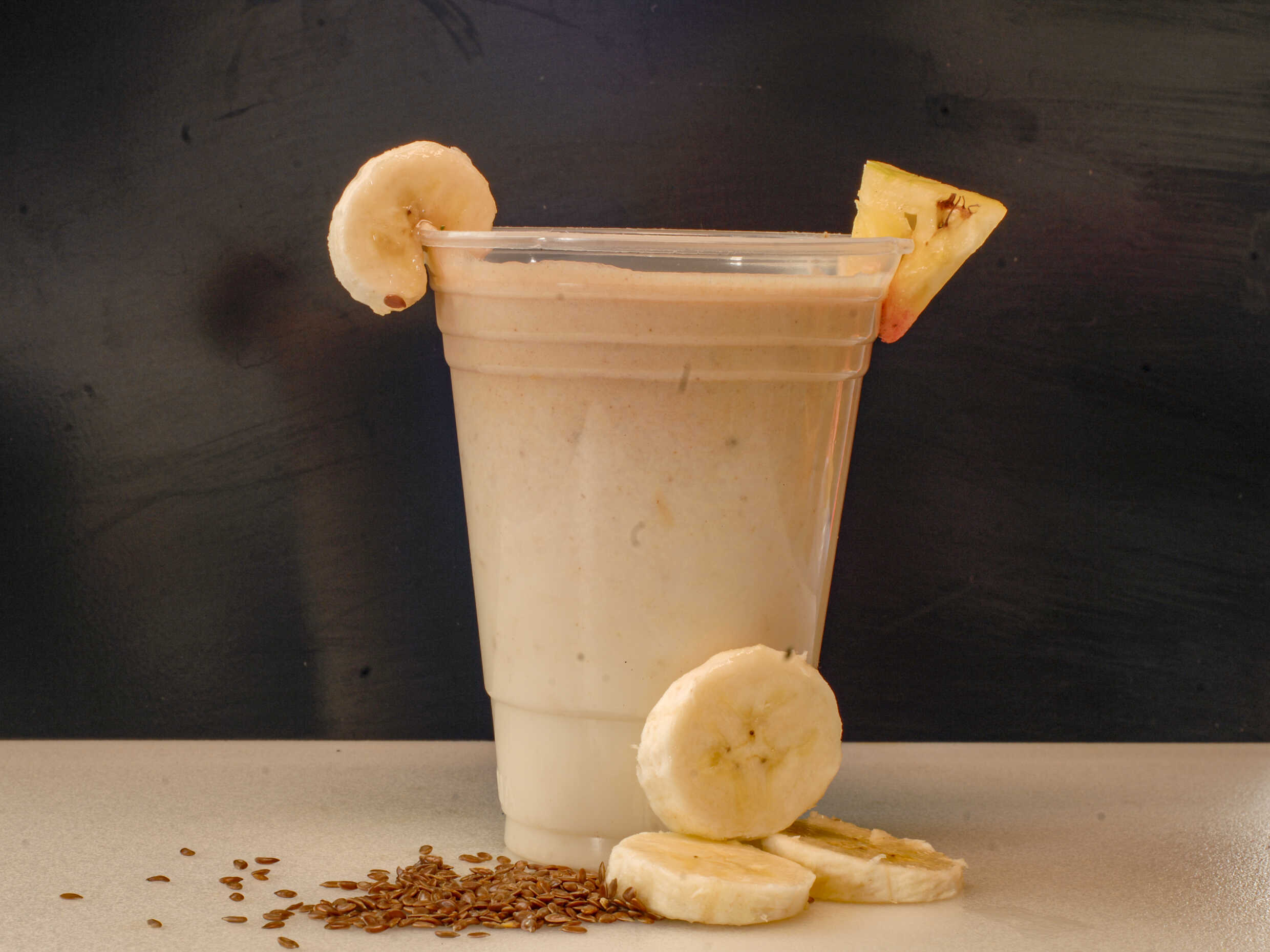 Plátano, piña y linaza.