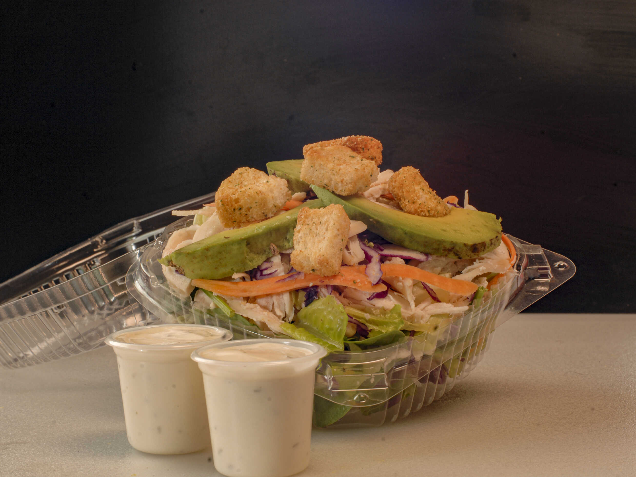 Lechuga, espinaca, zanahoria, pepino, aguacate, tomate, pechuga (100gr)