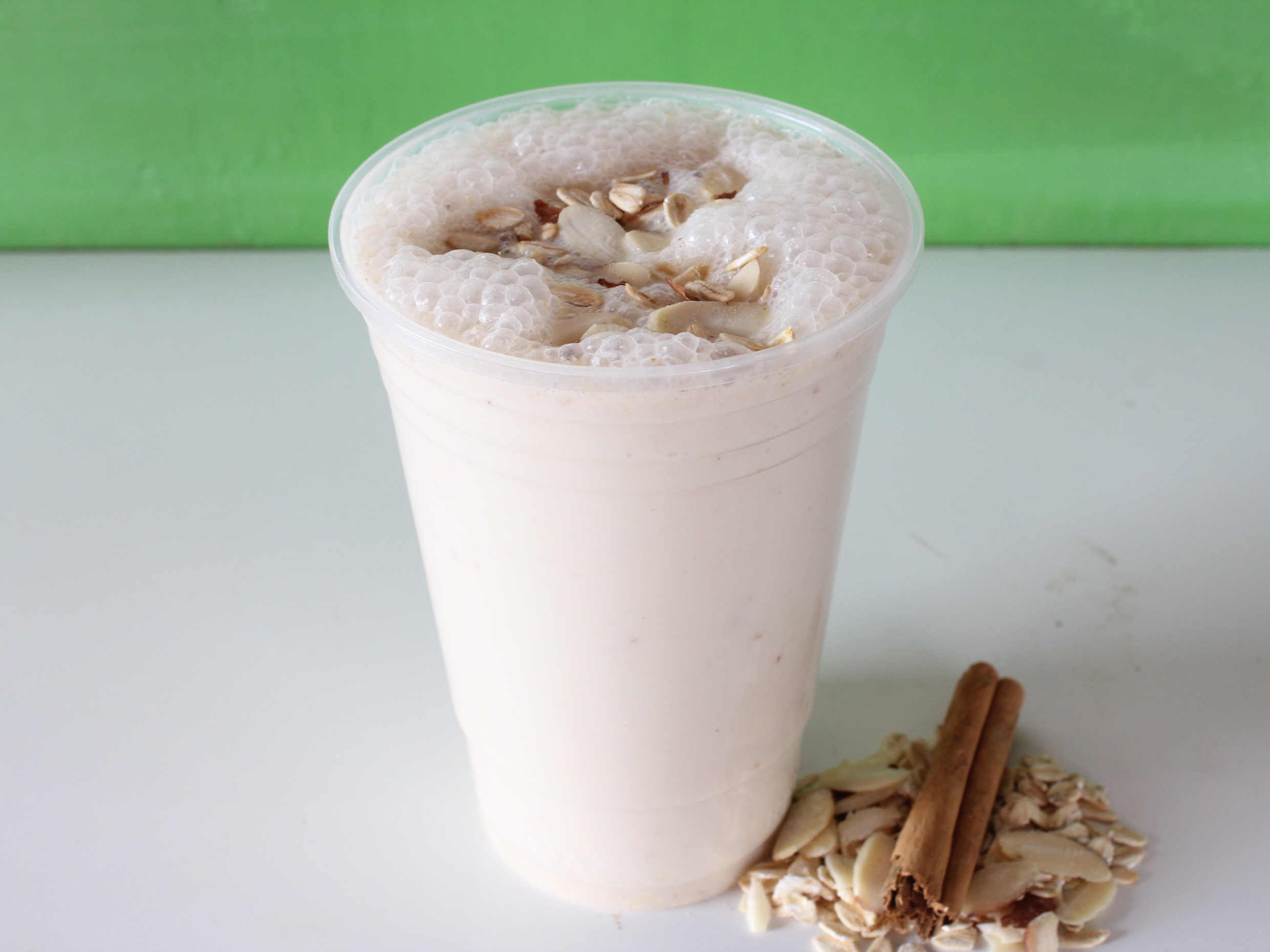 Plátano, avena, almendra y vainilla.