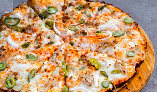 Salsa Base de Frijol con chipotle y tocino, Lleva jamón, chorizo, pepperoni, chile california, jalapeño.
