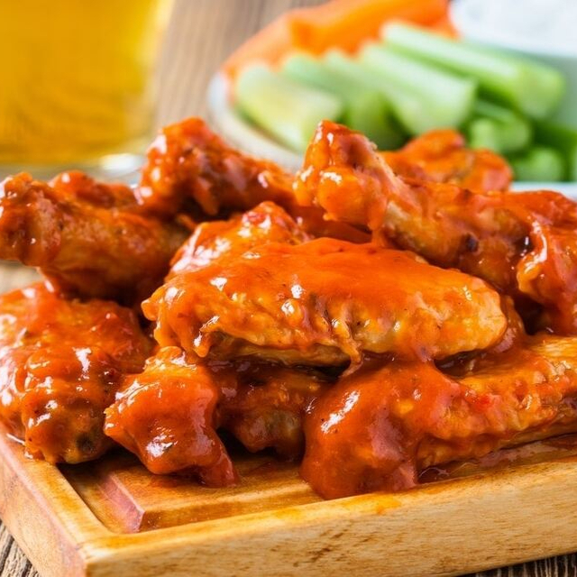 Deliciosos muslitos y alitas sazonadas con salsa cayen en mantequilla