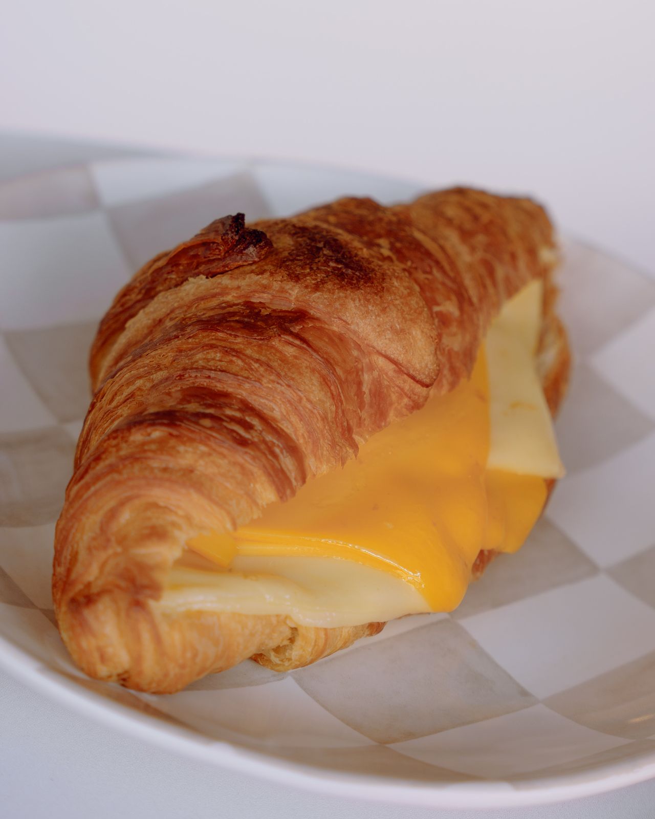 Croissant de jamón y queso o puro queso, americano 12 oz.