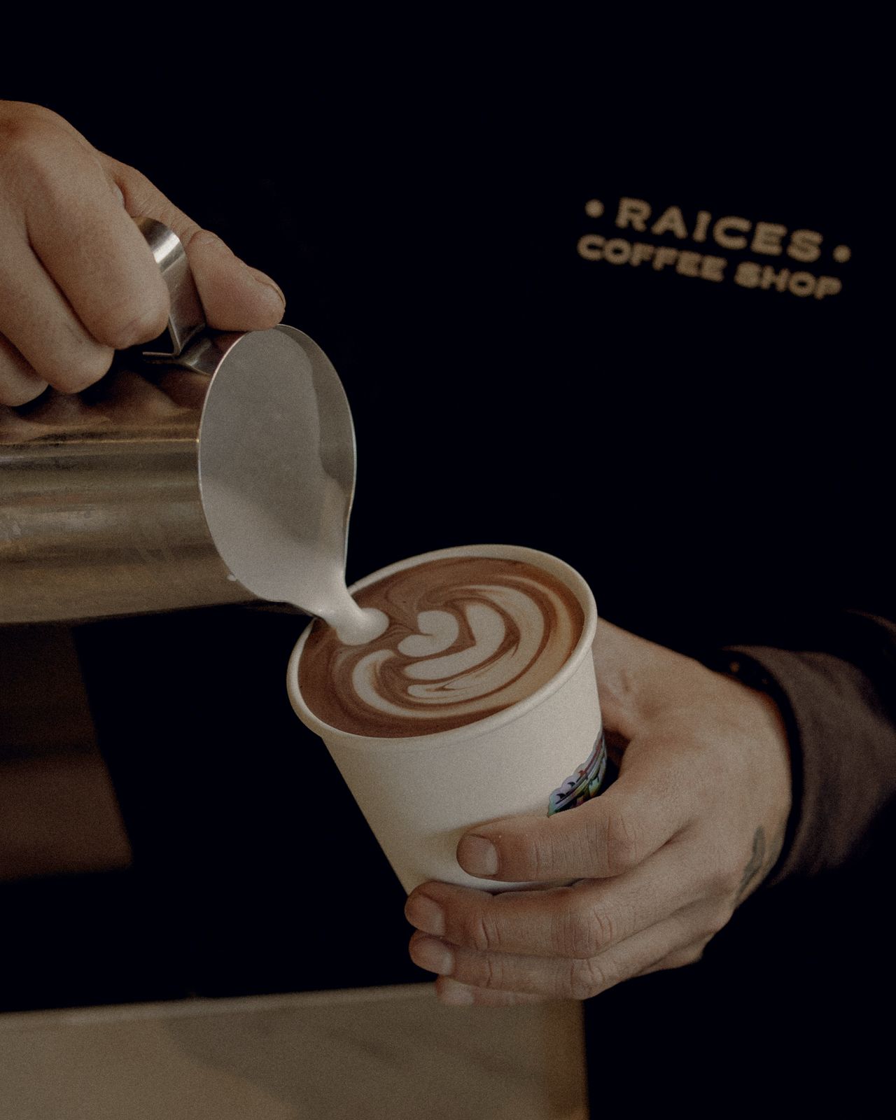 Espresso con abundante leche vaporizada para un sabor suave y cremoso.