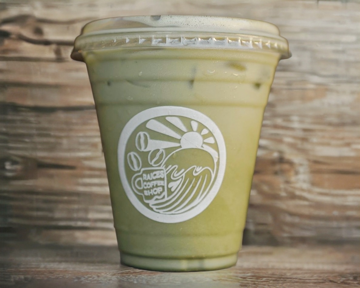 Té verde matcha mezclado con leche y hielo para un sabor suave y revitalizante.