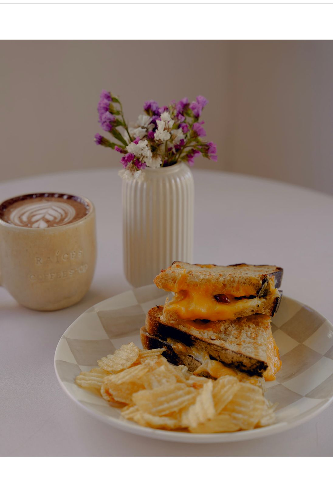 Jamón de pavo, queso americano, mayonesa de aguacate, mostaza dijon, lechuga, tomate, aguacate. Acompañado de papas fritas o ensalada.