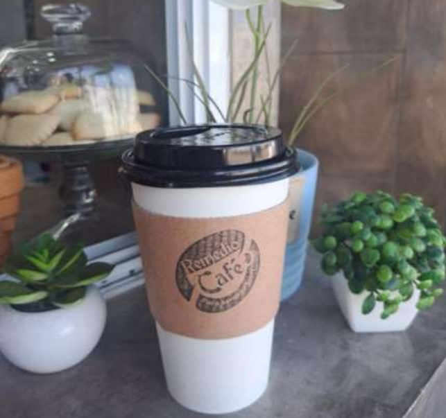 Café del día de 12 oz acompañado de un delicioso sándwich de jamón con queso.