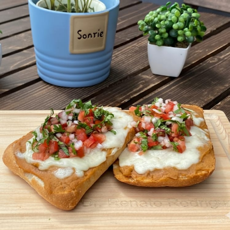 PAN CHAPATA ,FRIJOLES, QUESO DERETIDO Y SALSA BANDERA