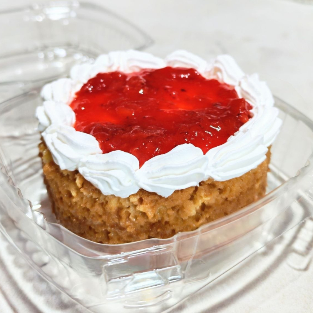 Pastel de 3 leches Vainilla decorado con fresa y chantilli.