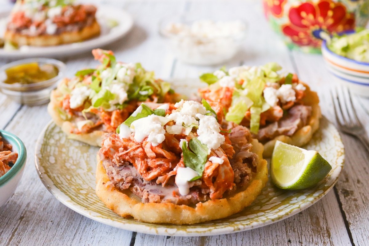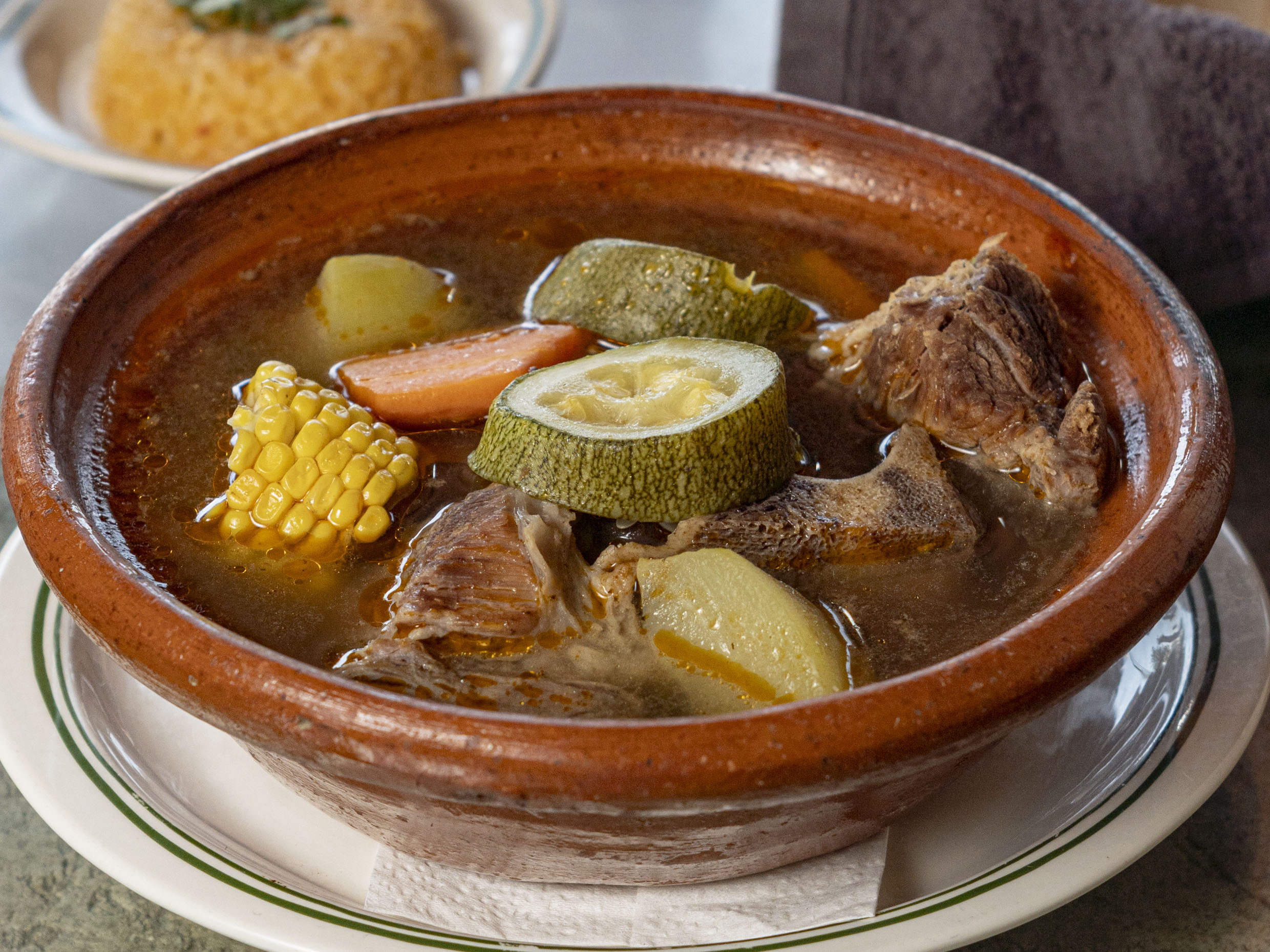 De res o pollo. Acompañado de lechuga, tomate, zanahoria, queso, crema. salsa y consome.