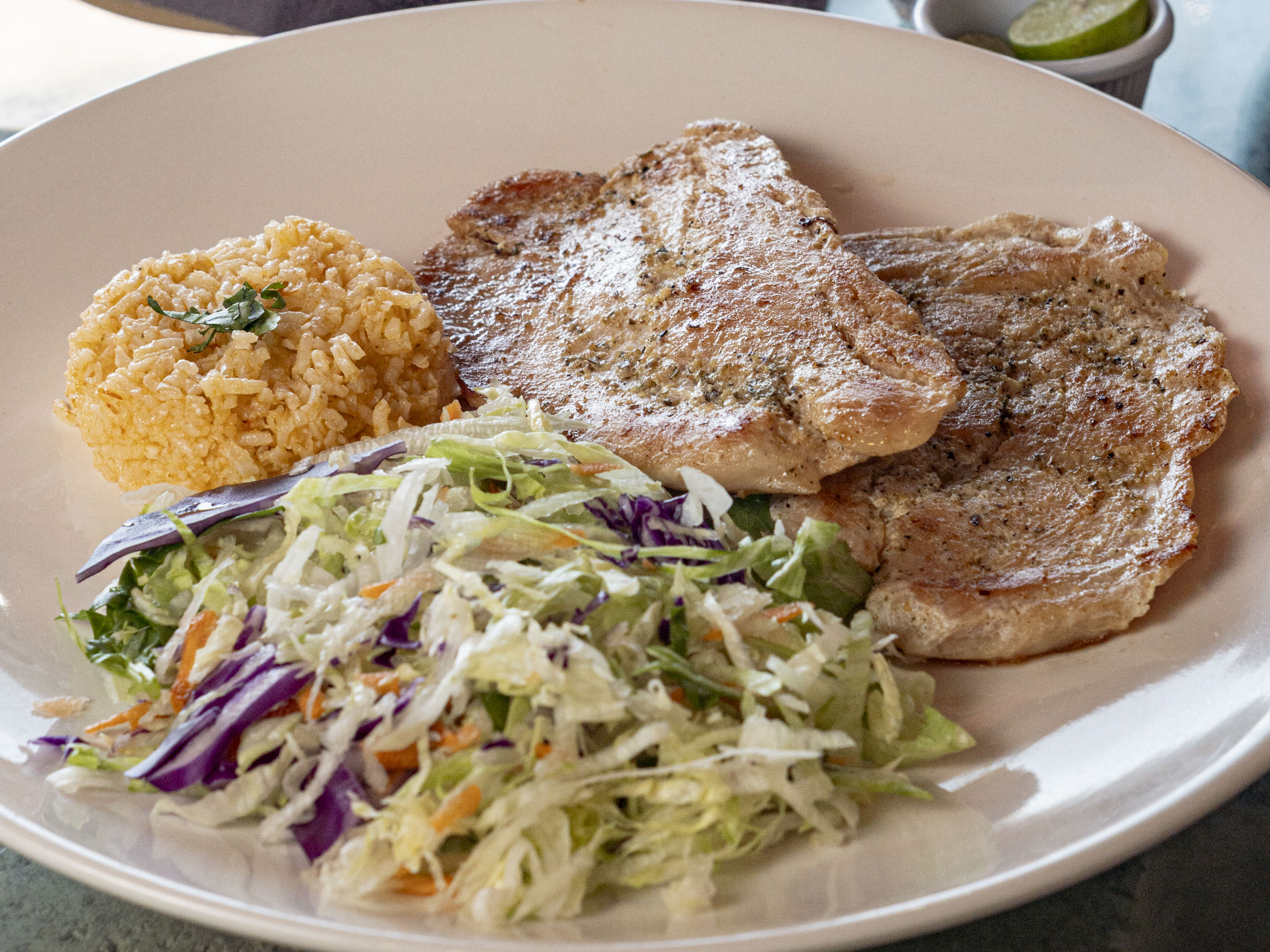 Marinada con receta del chef, acompañada con tomate, lechuga, fucionada con tocino, jamon y queso. Aderezada con chipotle. Acompañada con papas fritas.