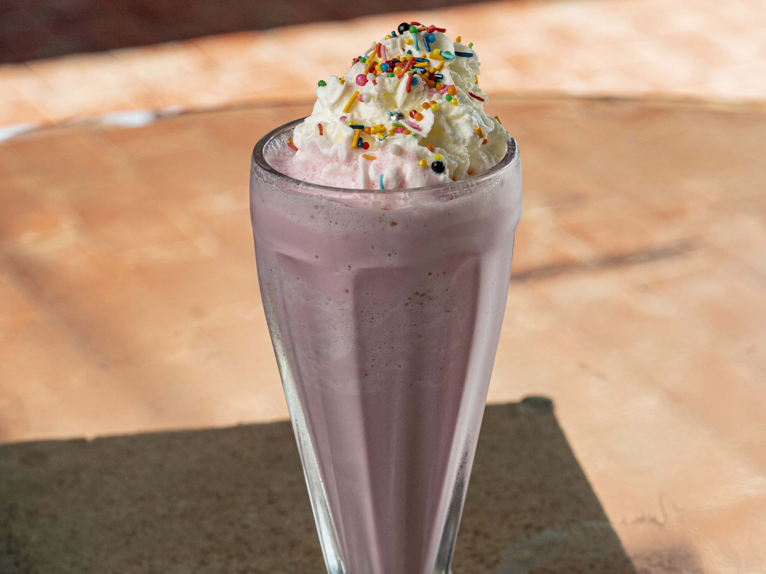 Rellena de carne desebrada de res. Bañada con salsa especial de la casa, aguacate, lechuga, tomate. Acompañada con papas fritas.