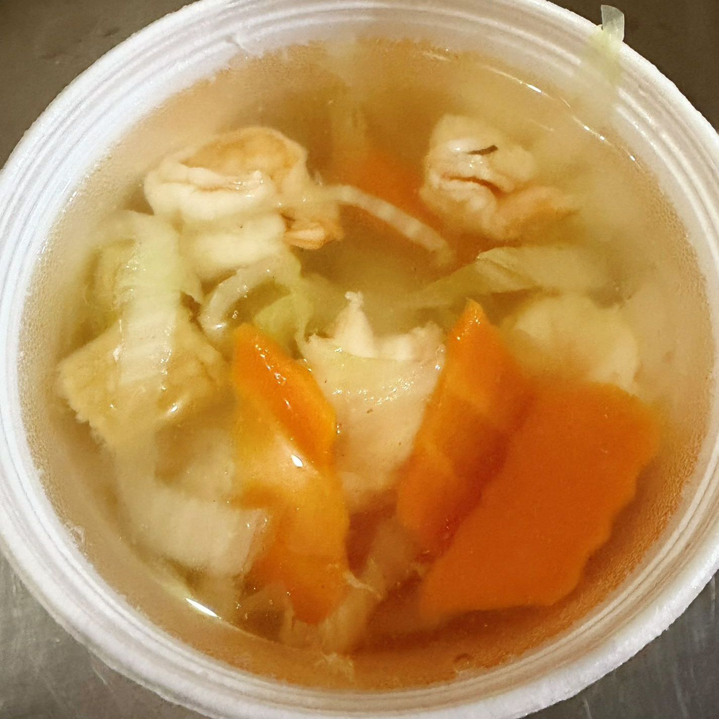 Sopa caliente y nutritiva con camarones seleccionados y vegetales.