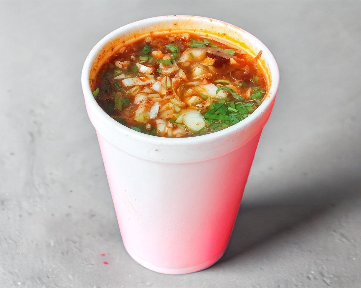 Porción personal: Jugo de birria con Carne por unidad de 12 oz + Taco Dorado
