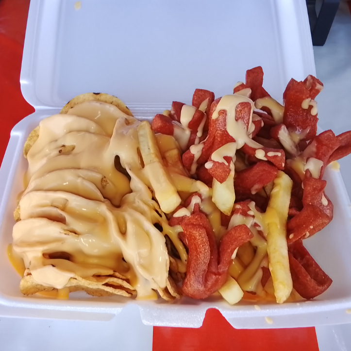salchipapas mitad nachos con queso