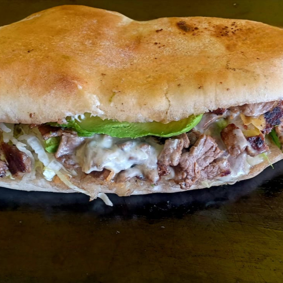 Chorizo de res , queso monterrey , aguacate , tomate , cebolla y lechuga