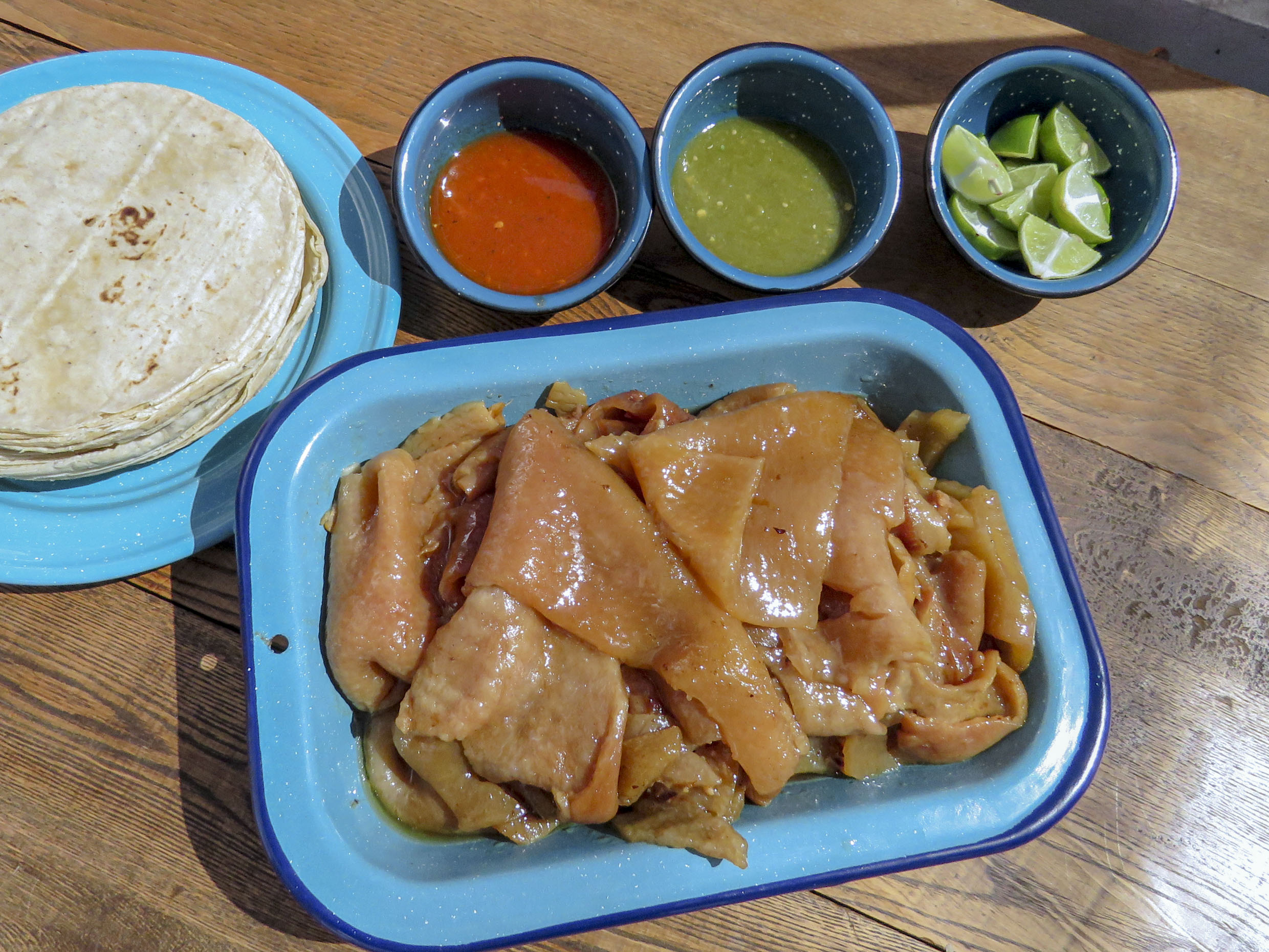 Maciza, cuerito y buche. Aparte incluye salsa (roja y verde), verdura (bandera) y limon