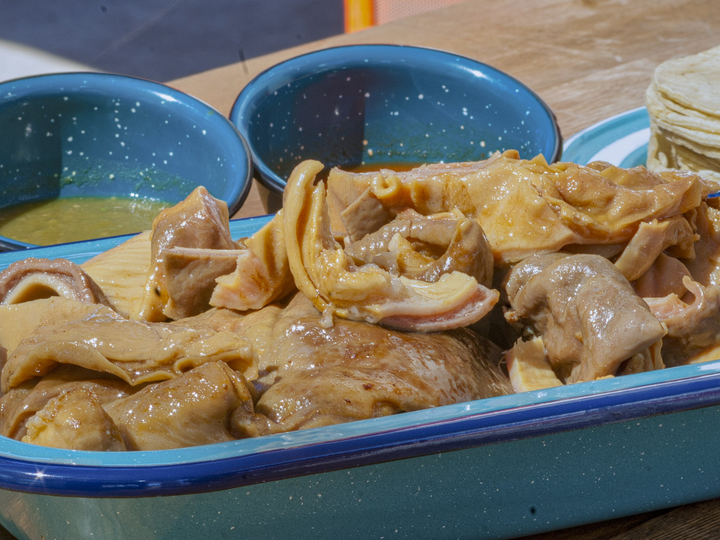 Maciza, cuerito y buche. Incluye salsa (verde y roja), verdura (bandera), limon y 1/2 kg. Tortillas aprox.