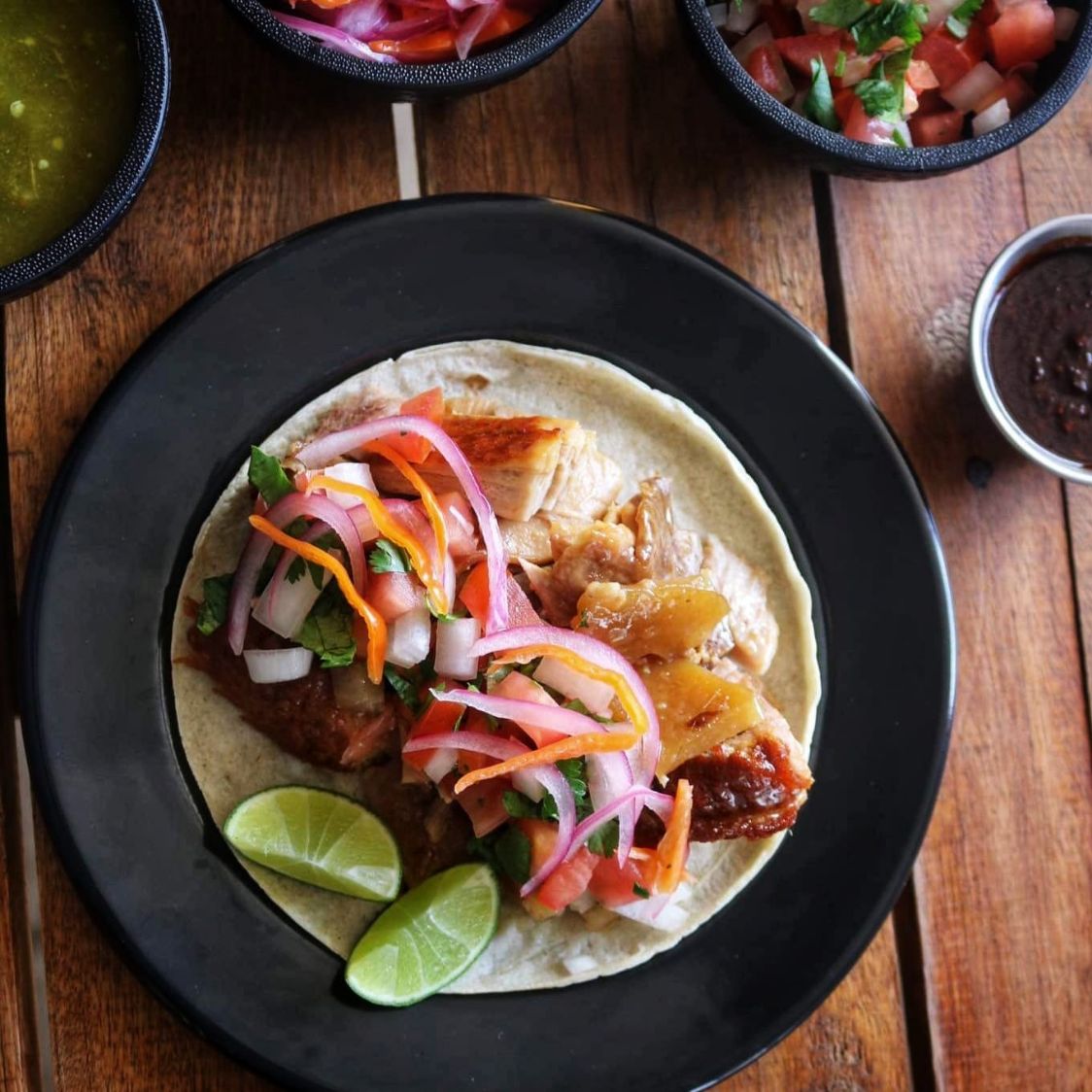 Incluye salsa (verde y roja), verdura (bandera), limones y 6 tortillas