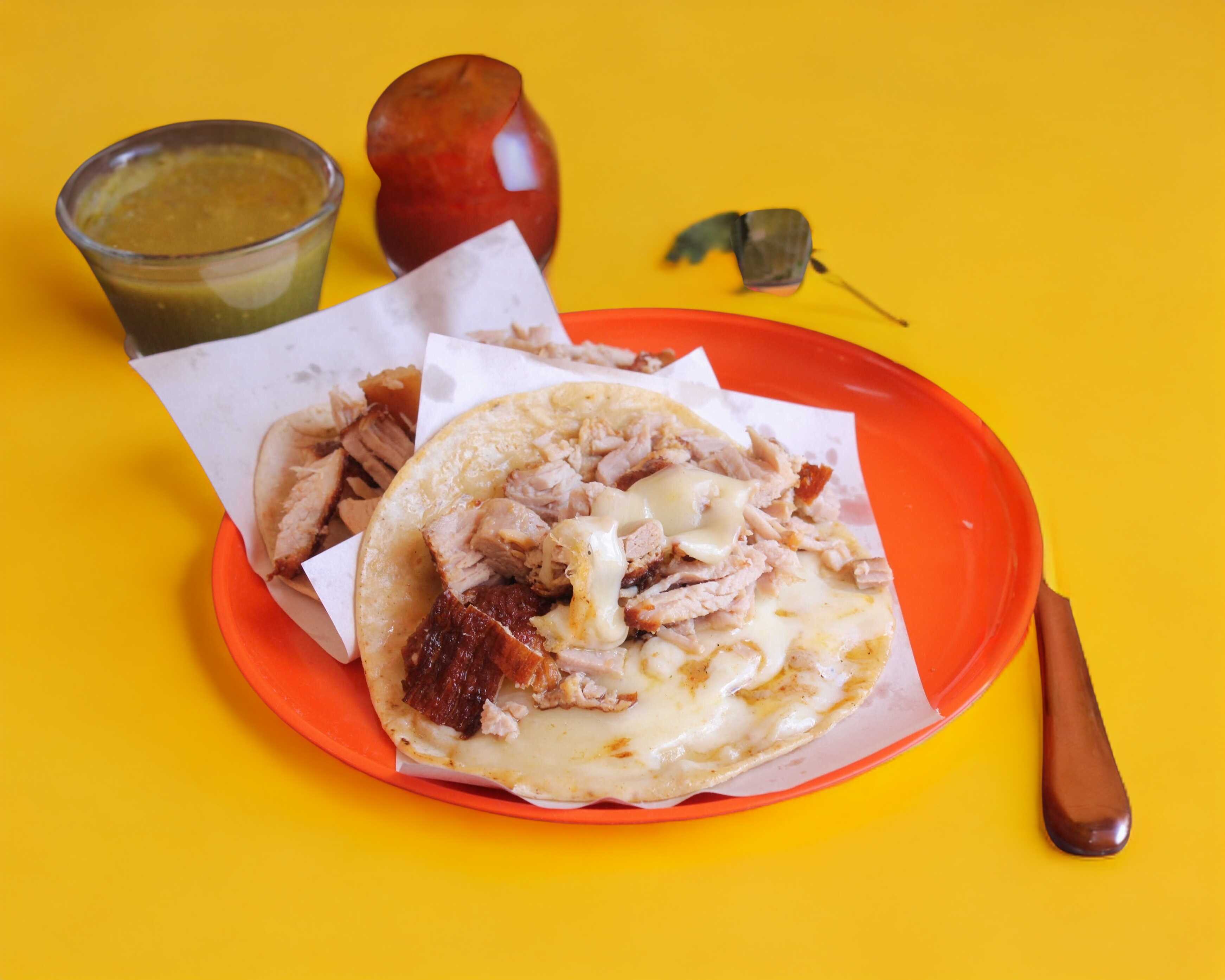 Tortilla de maíz, salsa aparte.