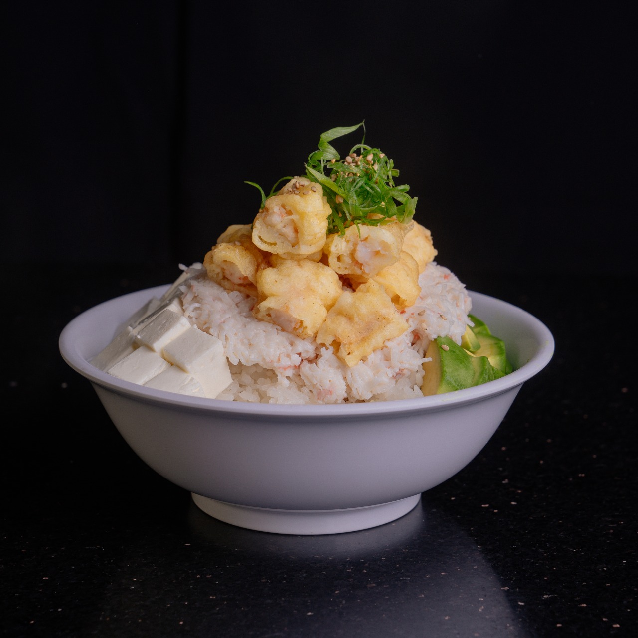 Queso ,aguacate y cangrejo cangrejo spicy con callo catarina encima