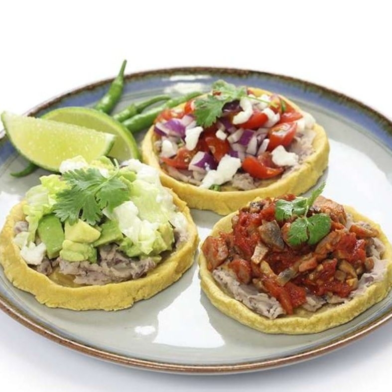 4 Sopes pequeños con ingredientes tradicionales.