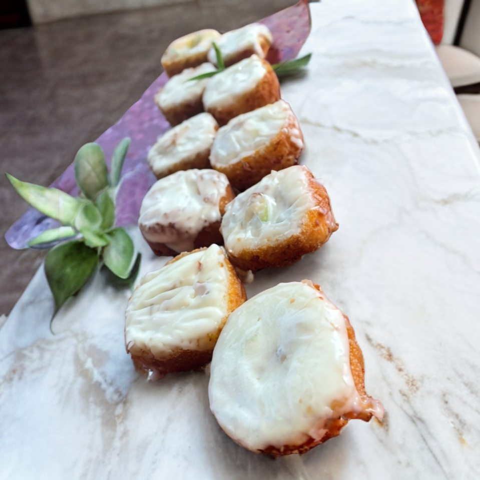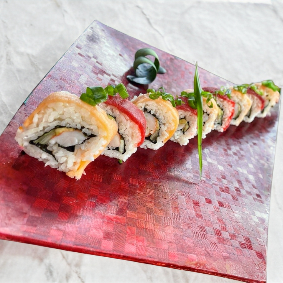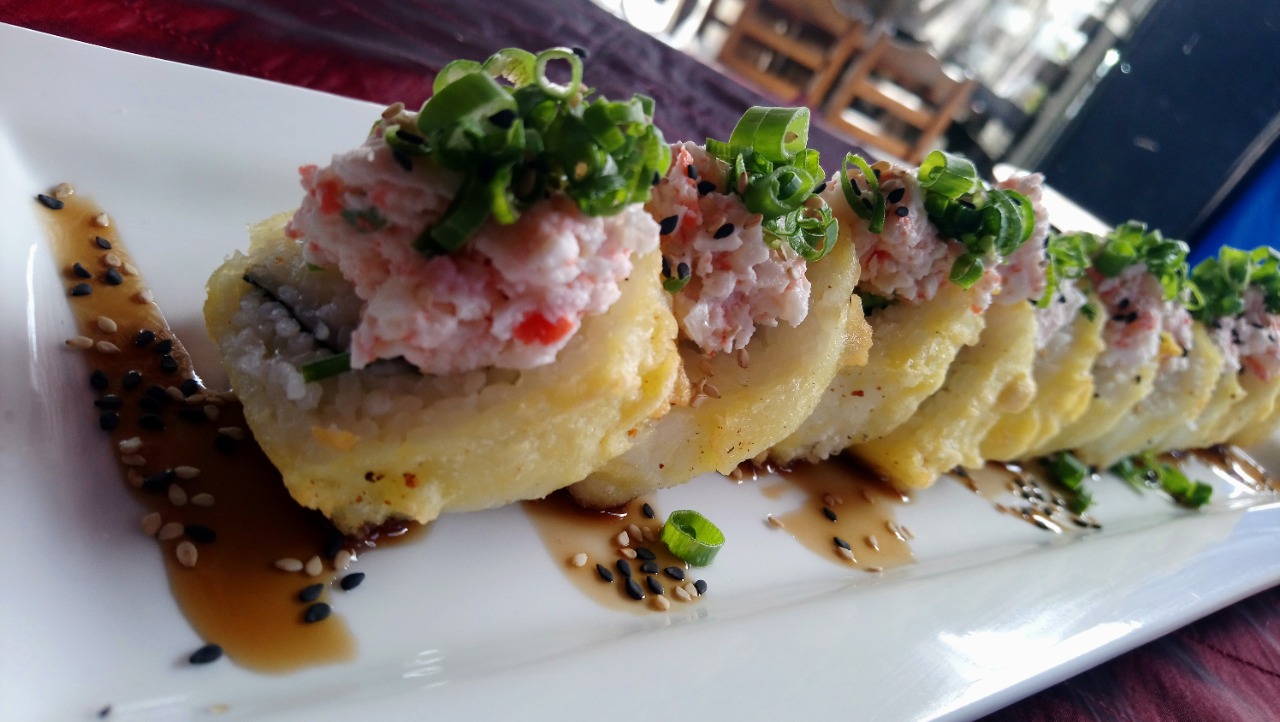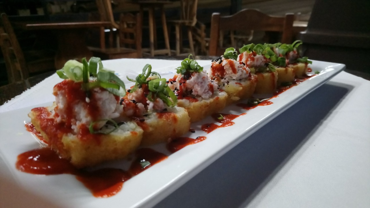Relleno de surimi, aguacate y queso crema, bañado en harina tempura y frito con un delicioso topping de Tampico