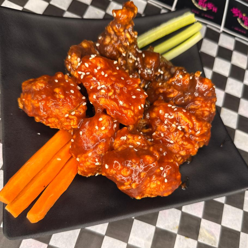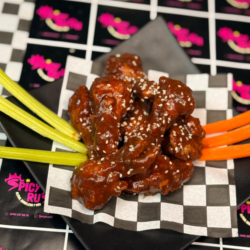 1 kg de alitas (salsa a elegir), apio, zanahoria y aderezo ranch