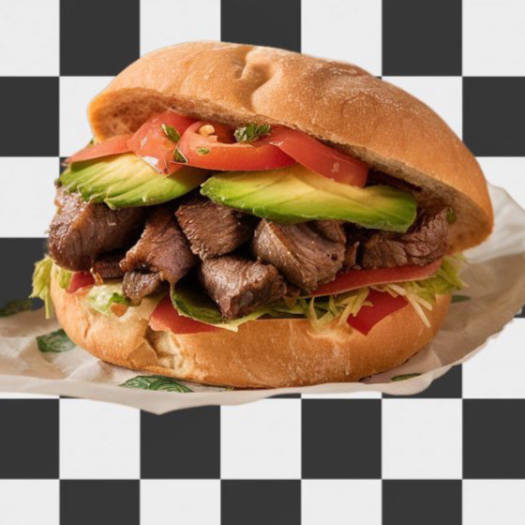 Carne, queso monterrey, lechuga, tomate, cebolla, aguacate