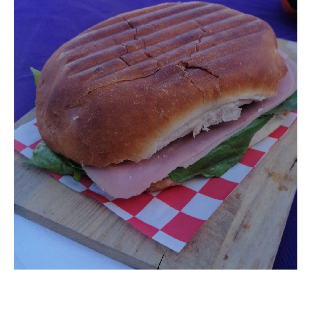 Torta del chavo en pan de telera o bolillo. Jamón, queso amarillo, lechuga, tomate y cebolla.