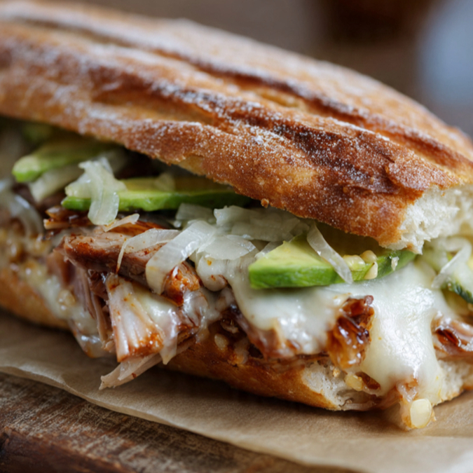 Torta de Chicharrón Prensado*1 + CHOCOBANÁ*1 + Burrito de Pierna de Puerco*1 + Burrito de Frijoles con Queso*1 + ALOHA*1