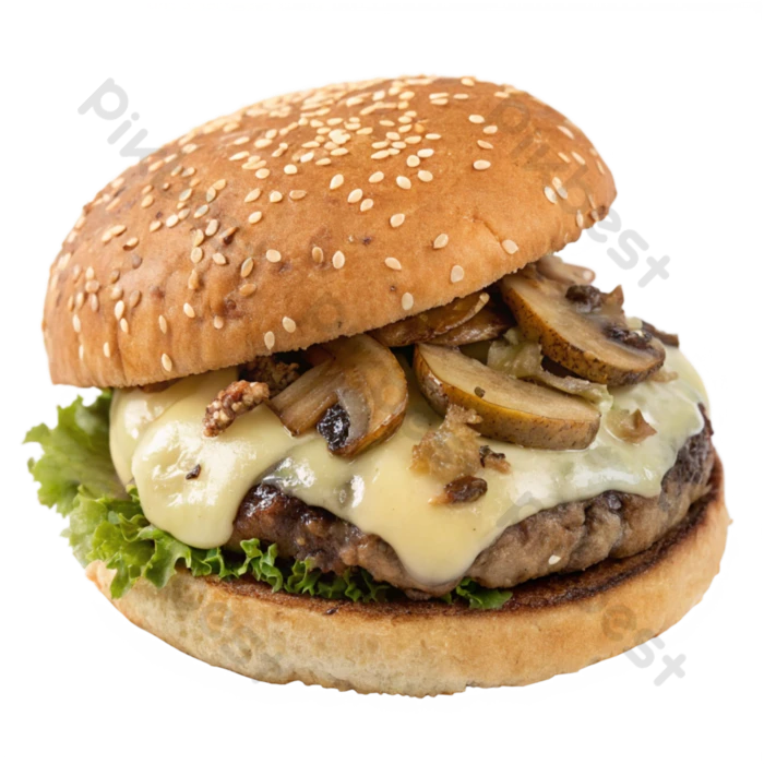 Hamburguesa de res con champiñones con queso gratinado y vegetales