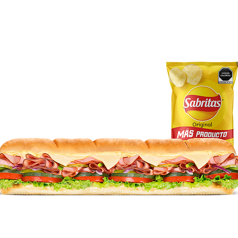 Una nueva promo llena de Sabor: Footlong _+ Sabritas. Elige tu Footlong entre Pizza Sub y Jamon de Cerdo y acompaña con Sabritas