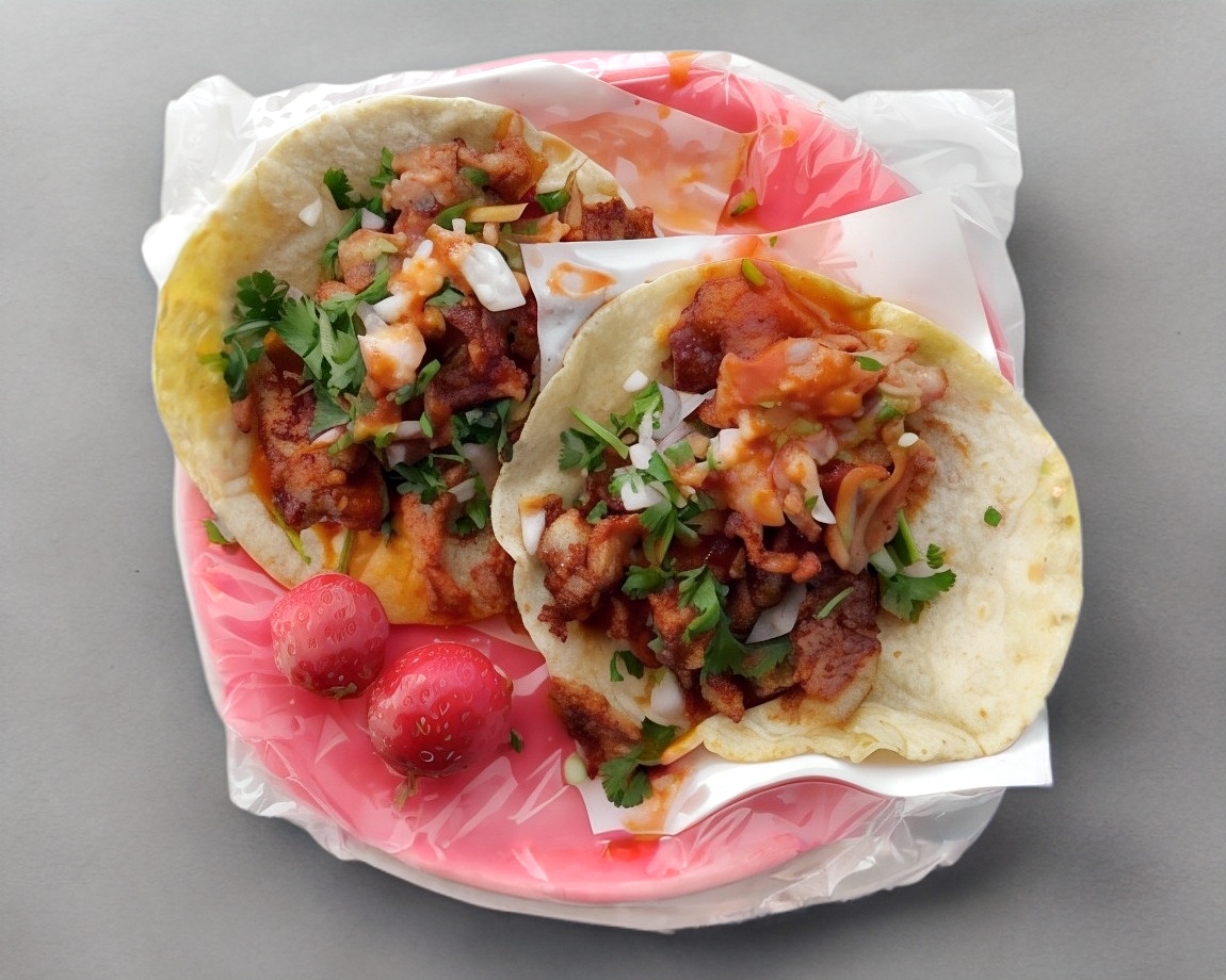 Tortilla de harina o maiz, queso, y carne + Salsa y aderezo