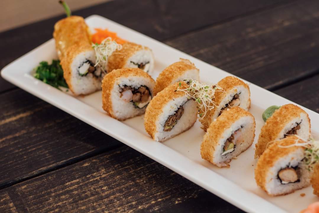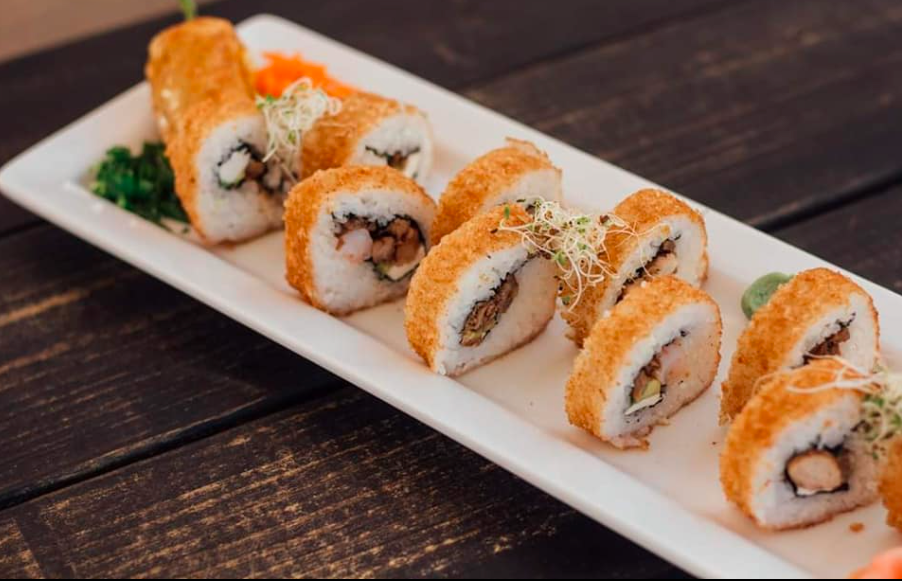 Philadelphia, camarón, surimi empanizado, tocino y res.
