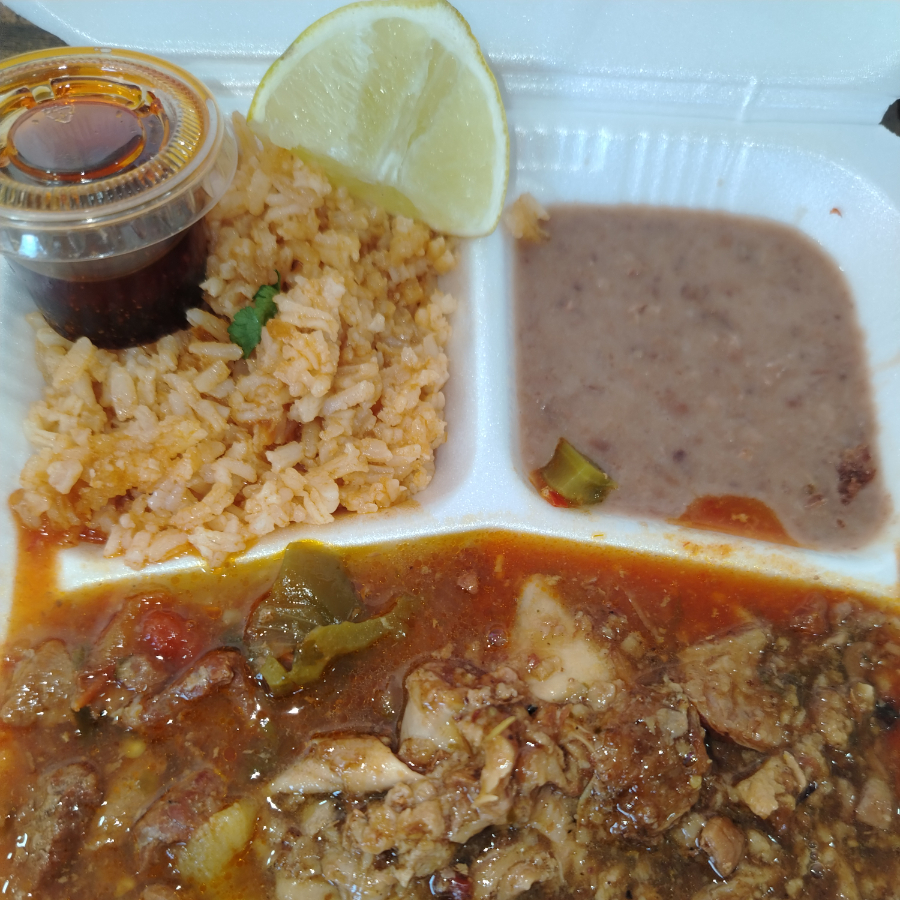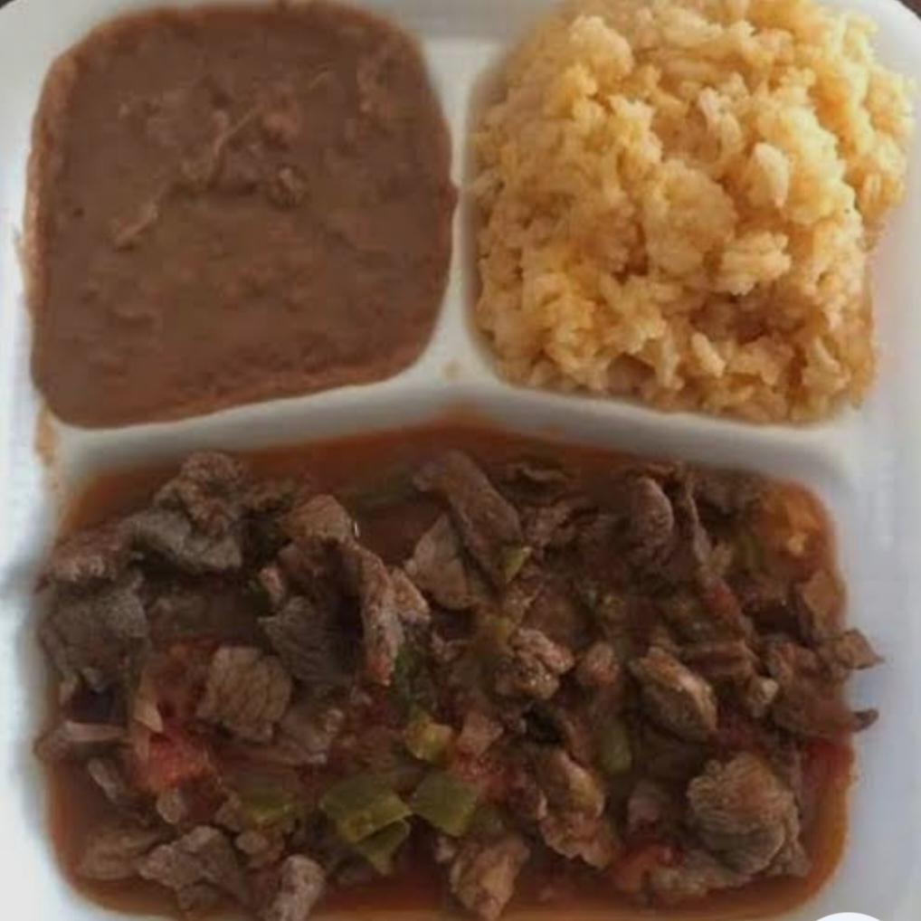 Carne deshebrada a la mexicana con frijoles y arroz 4 tortillas y salsa