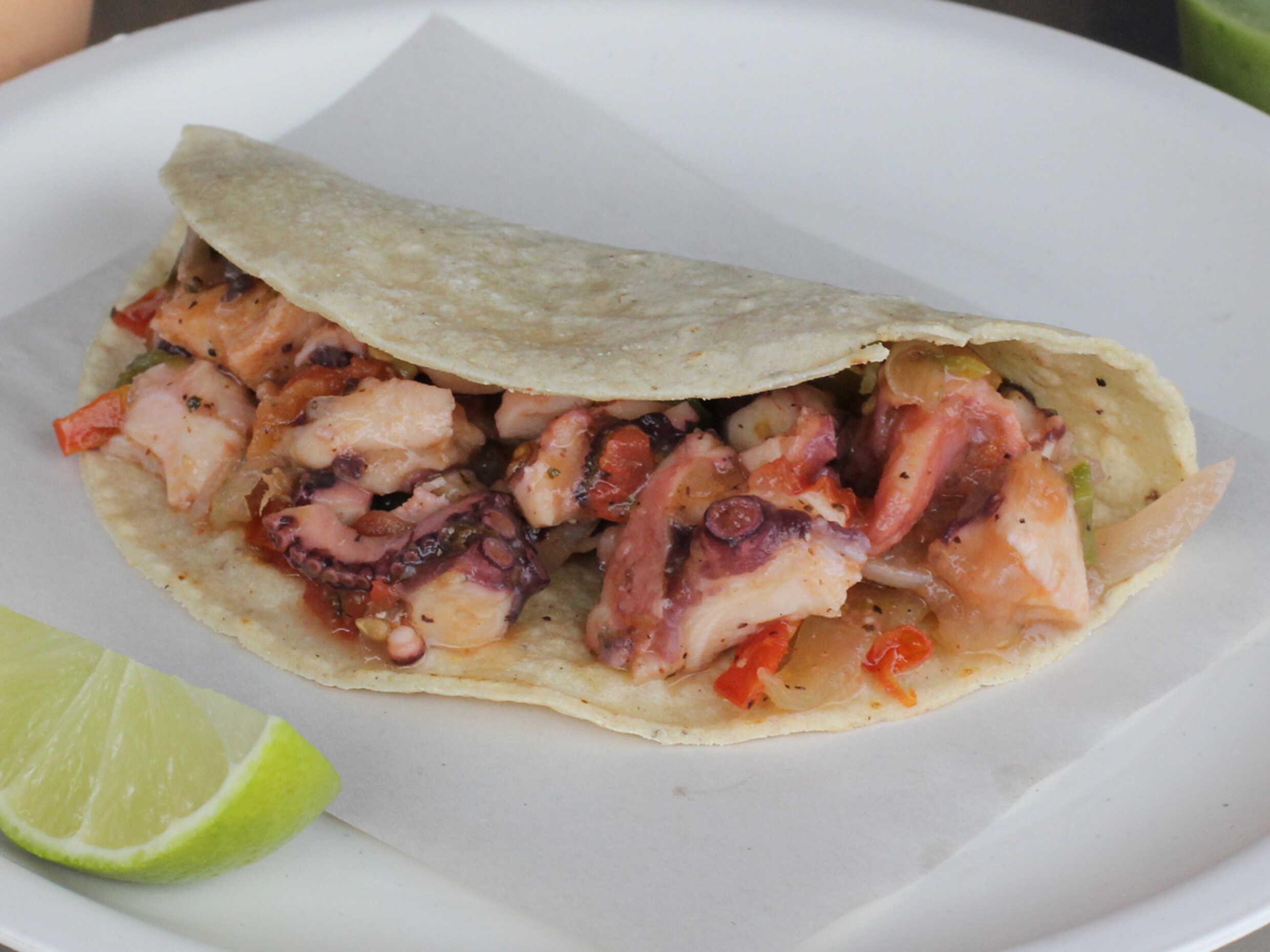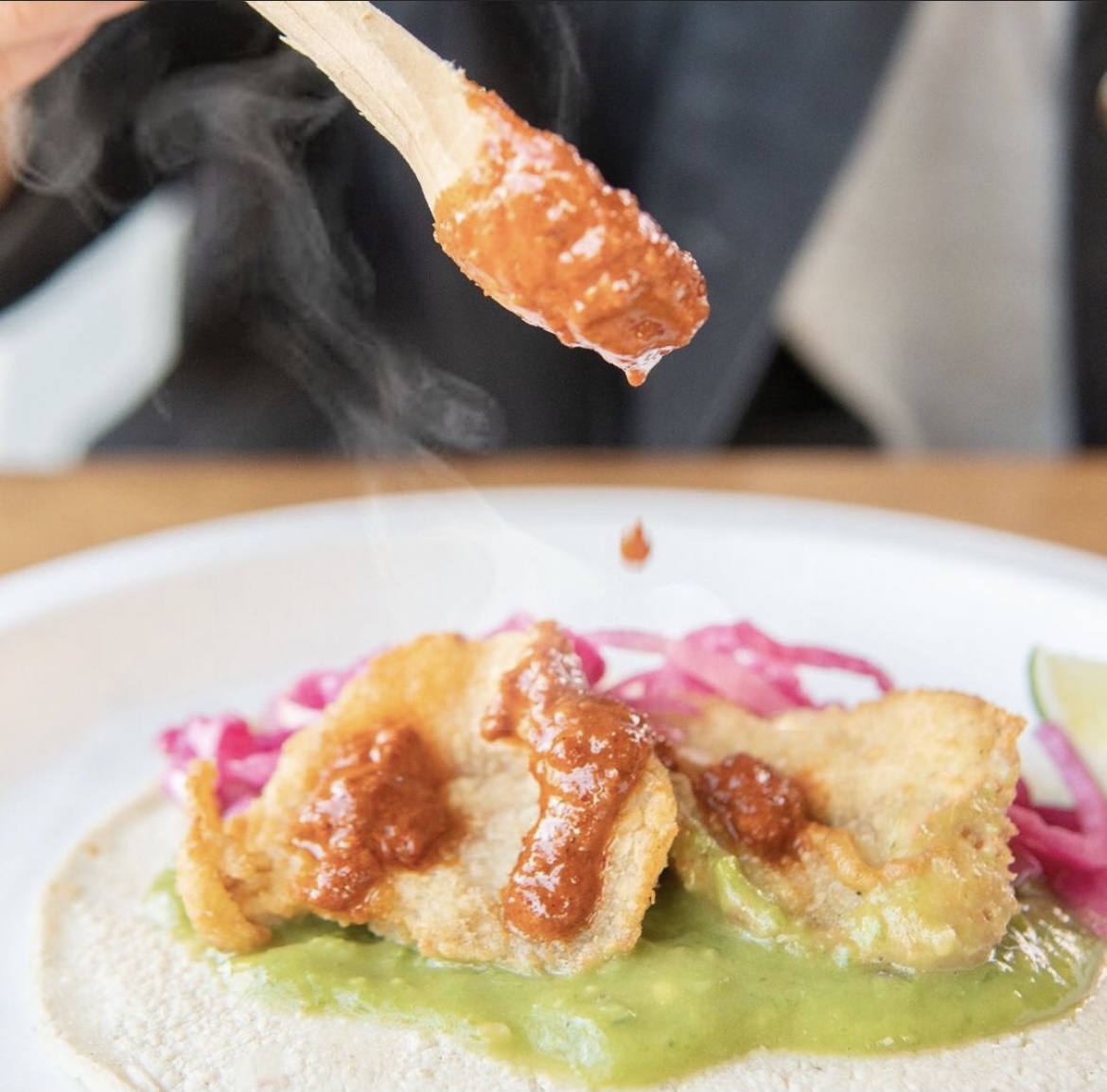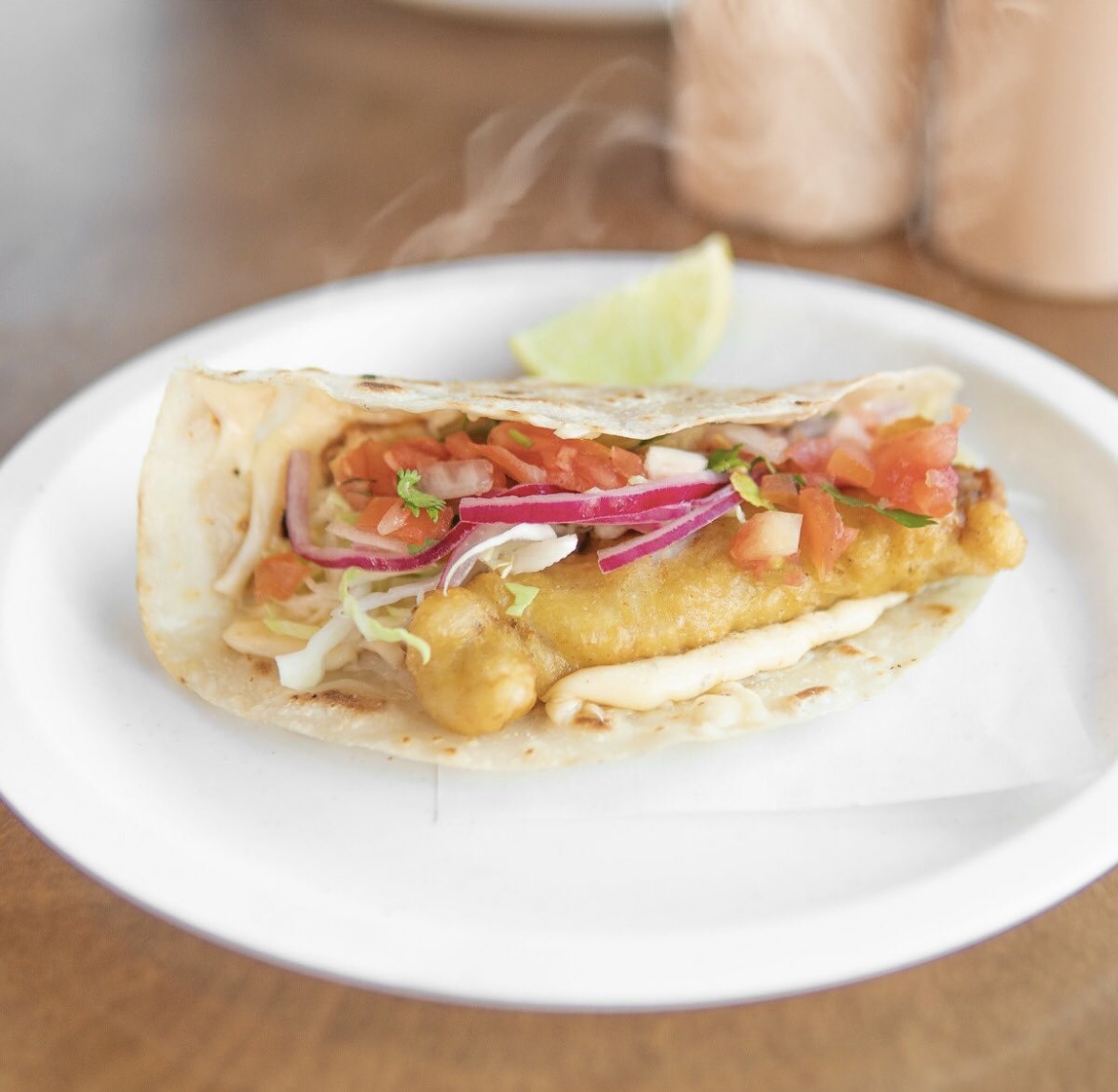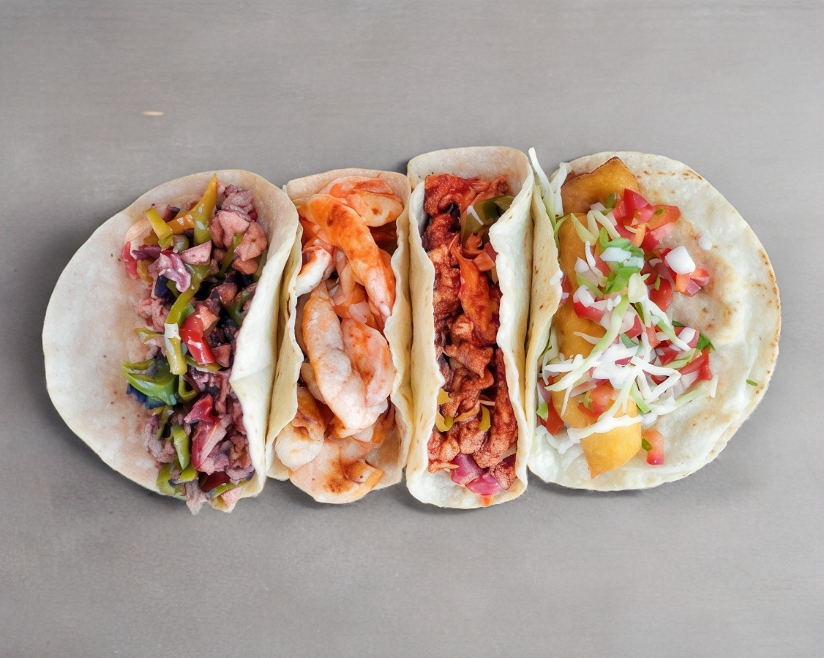 1 Taco Camarón + 1 Taco Pescado + Bebida
