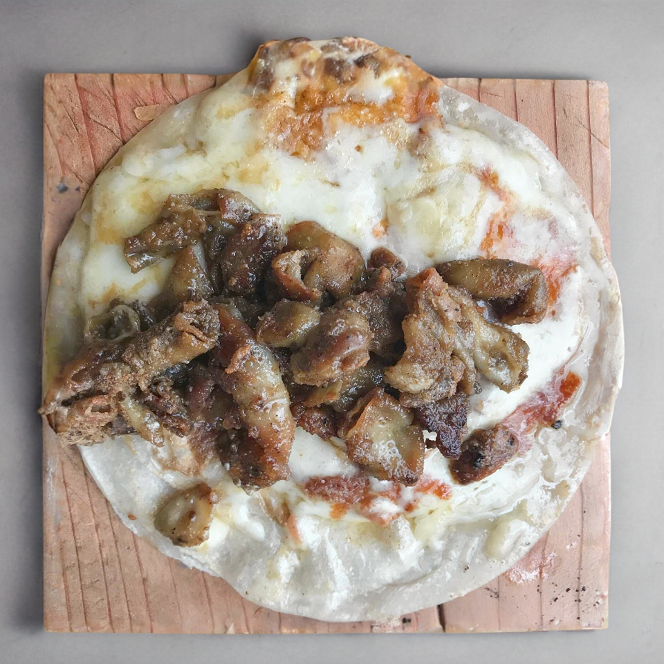Tortilla de harina o maiz, tripa de res, frijol, salsa, guacamole, cilantro, cebolla, rábanos,