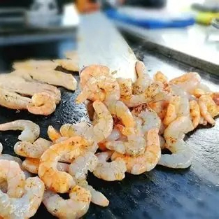 Piezas de camarón cocinados con aceite de olivo ala plancha