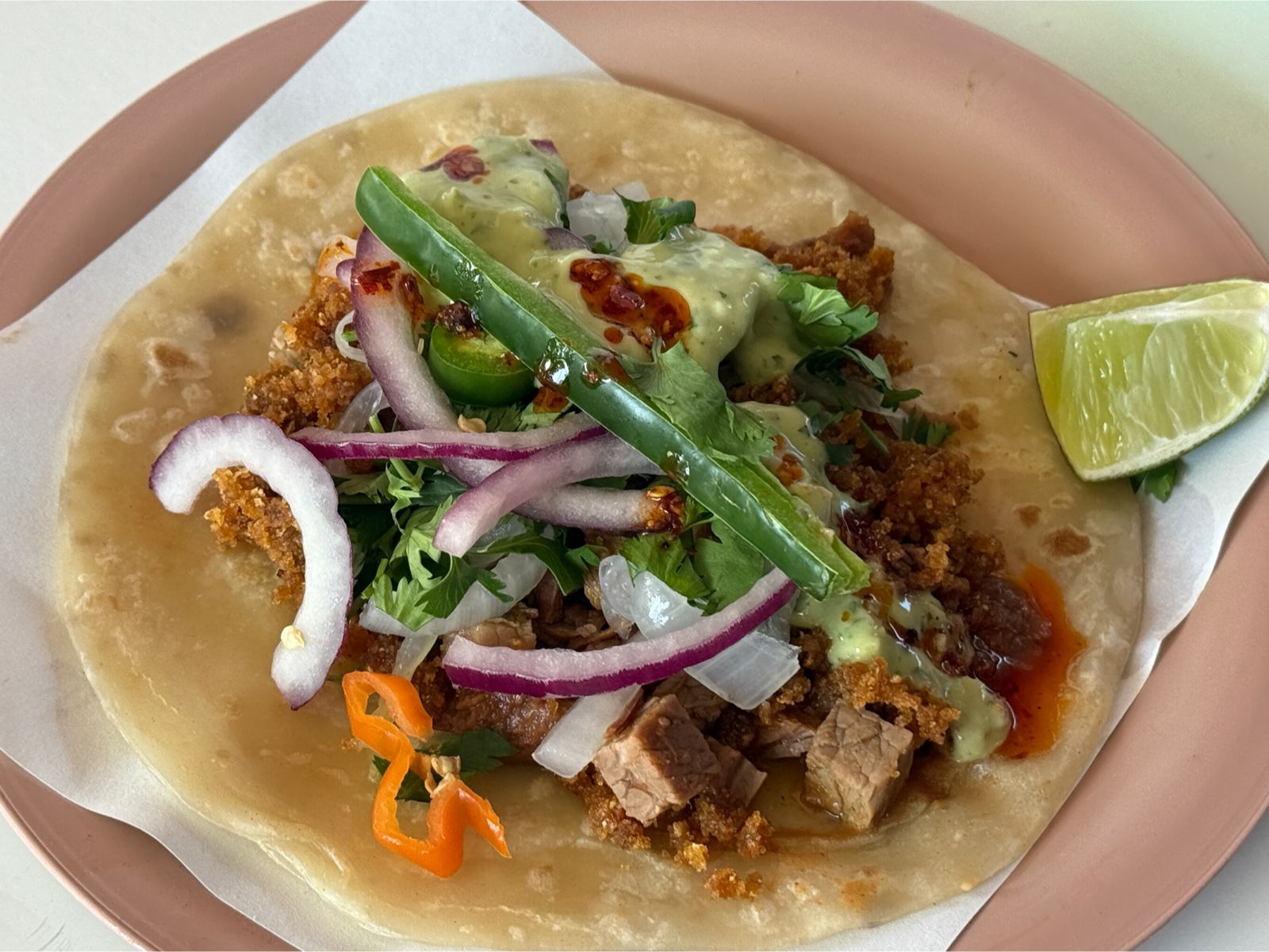 frijol con chorizo, carne en su jugo y chicharrón molido.