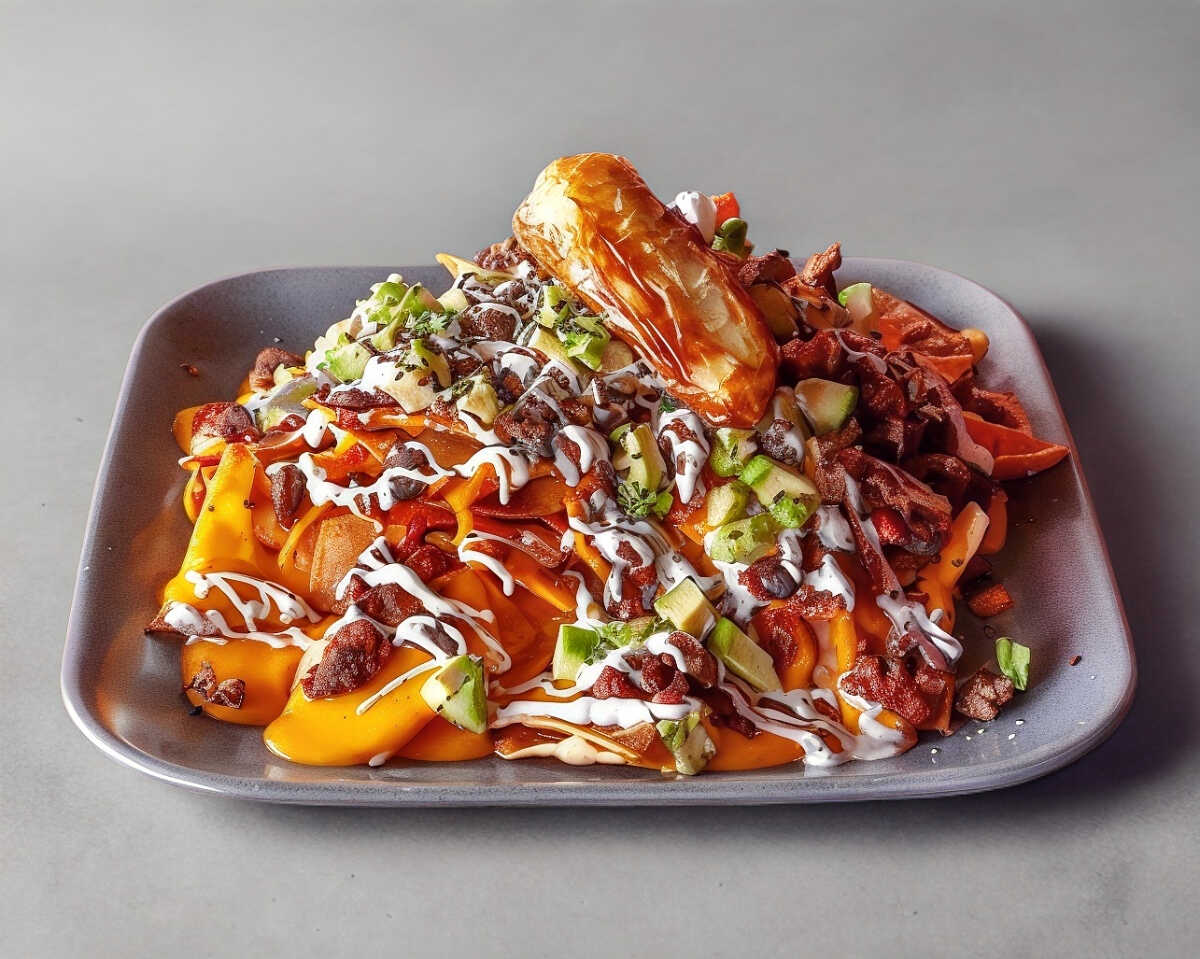 Servidos con salsa de queso cheddar, carne de cerdo en salsa BBQ, cebolla morada y jalapeño toreado.