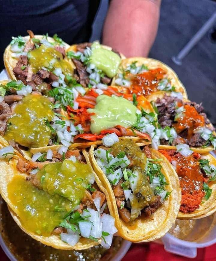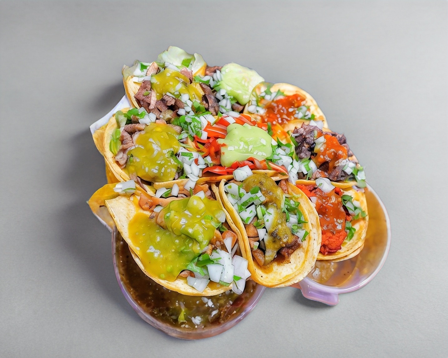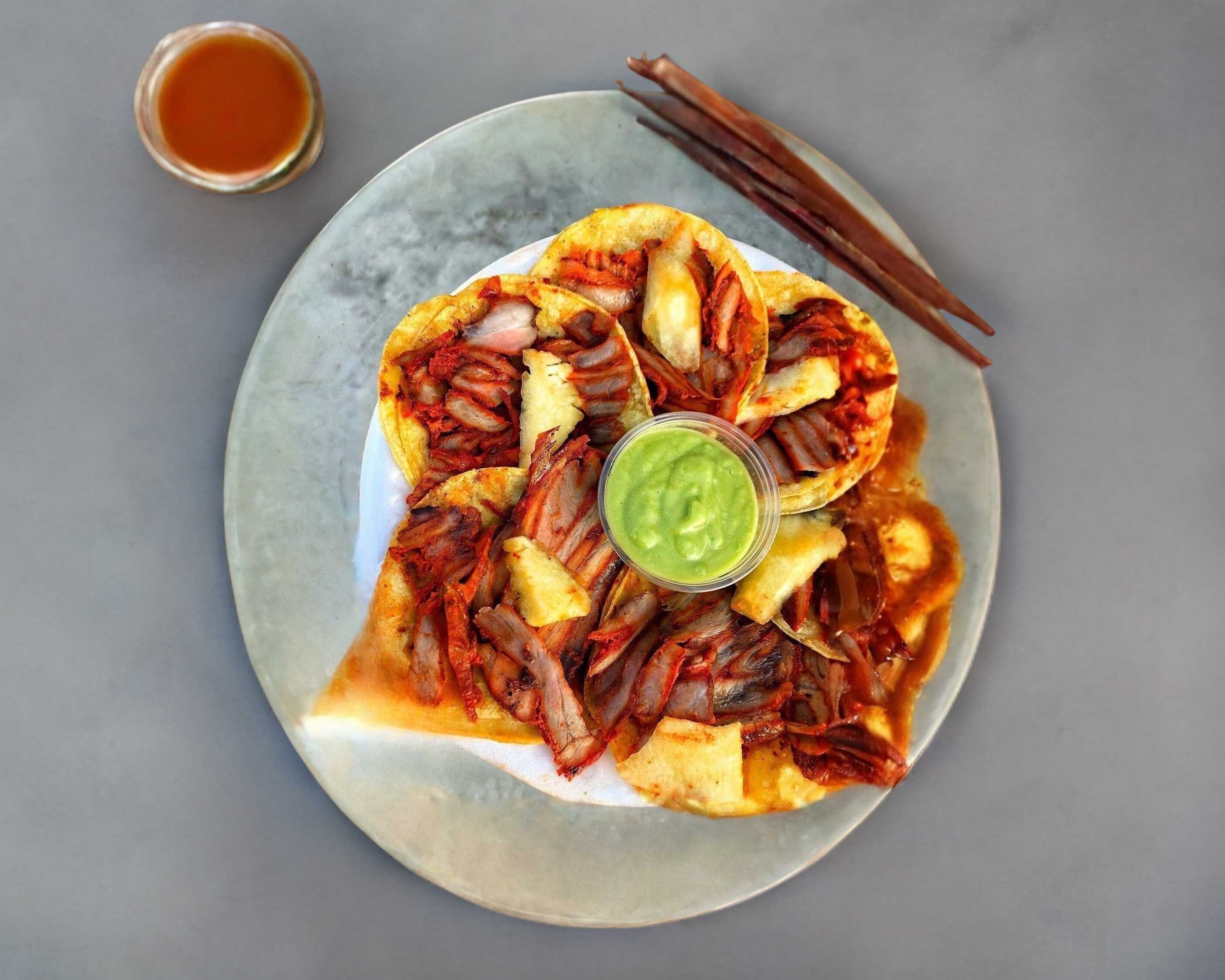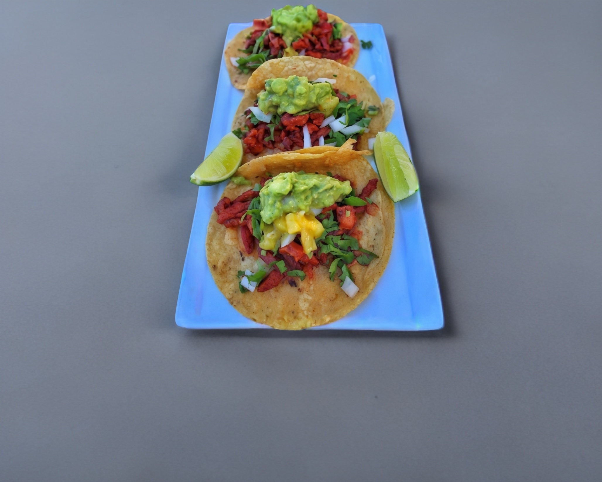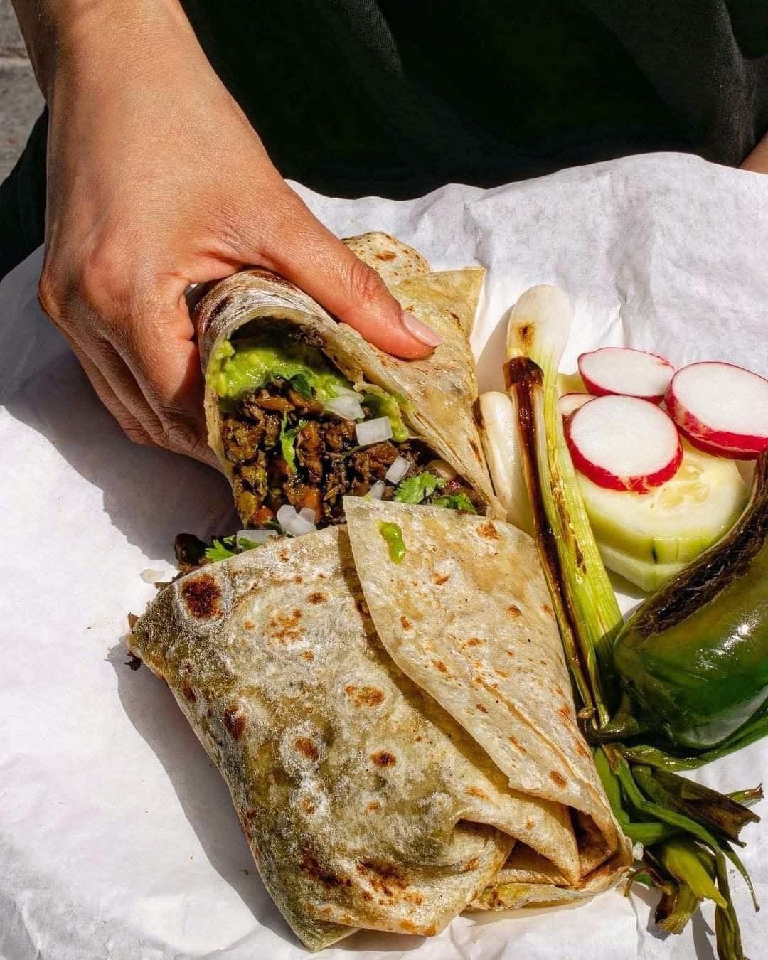 Burrito grande de tripa con cebolla, cilantro y guacamole