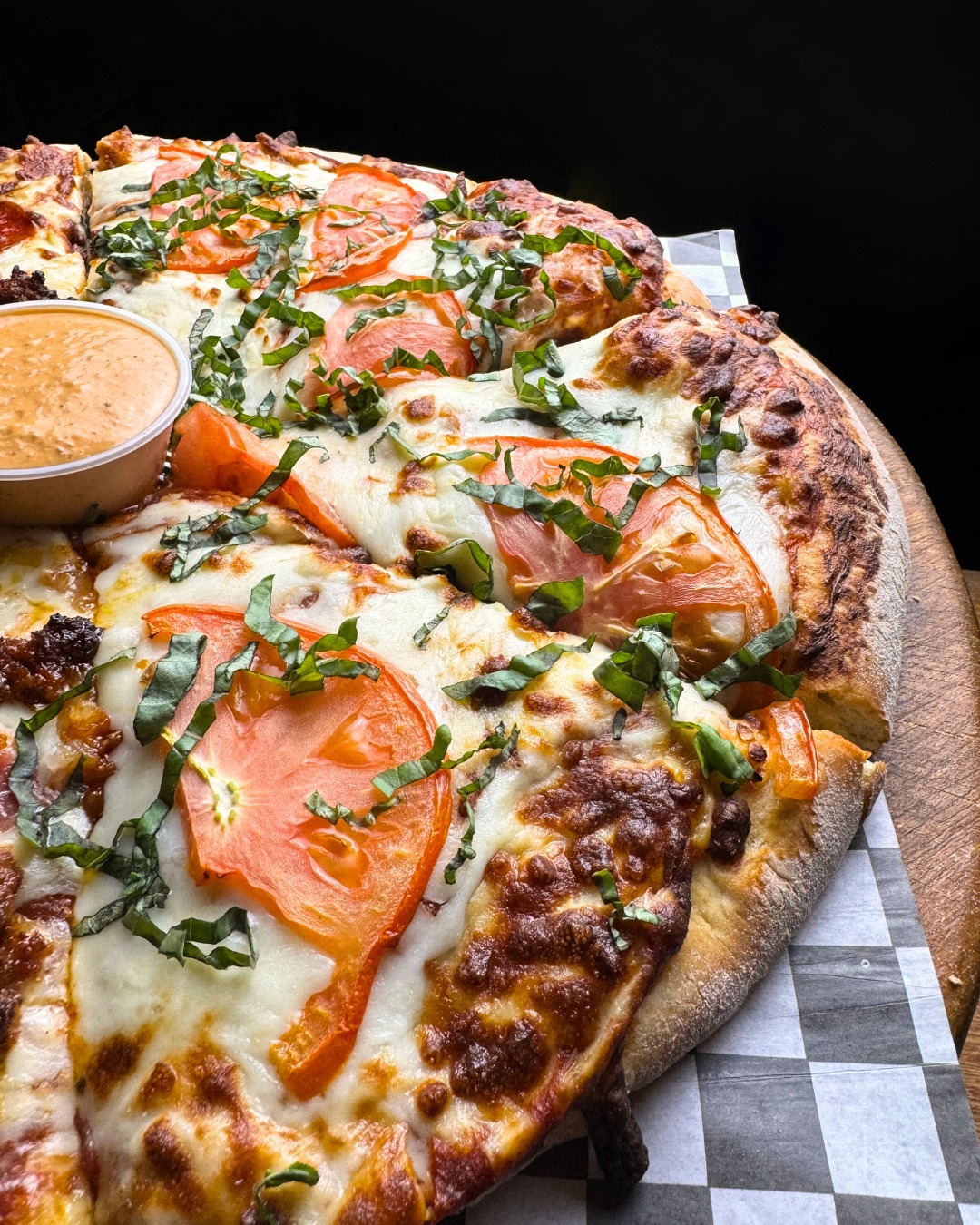 Deliciosa base de queso con Tomate y albahaca perfectamente horneados para hacaer una combinación de sabores única.