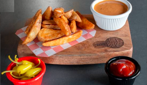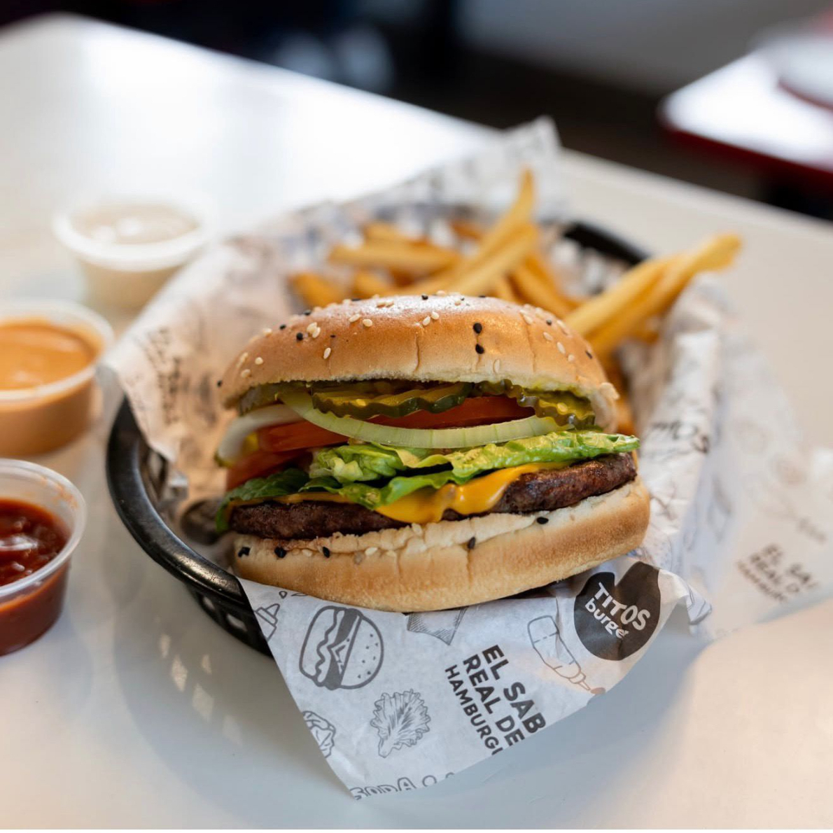 Carne,pan artesanal,hongo portobello,pimiento morrón a la parrilla,cebolla caramelizada y queso del Real asado,papas francesas y bebida.